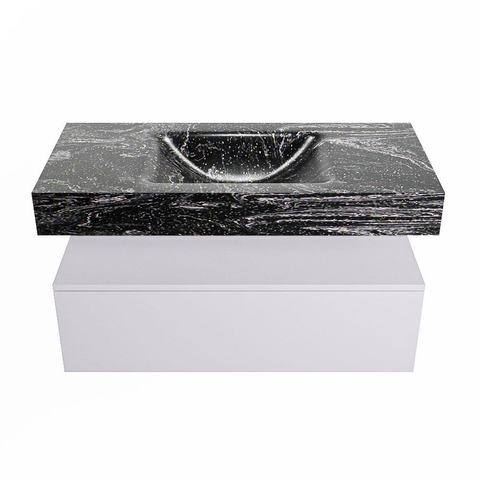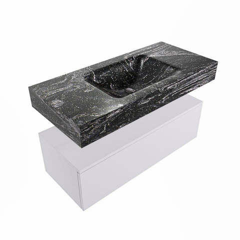 Naast het esthetische aspect is dit badkamermeubelset ook uiterst praktisch. De onderkast met 1 lade biedt voldoende ruimte om al jouw badkamerspullen georganiseerd te houden. De vrijhangende wastafel met de wasbak in het midden zorgt voor een efficiënt gebruik van de ruimte, terwijl het kraangat zorgt voor eenvoudige installatie van een kraan naar keuze.