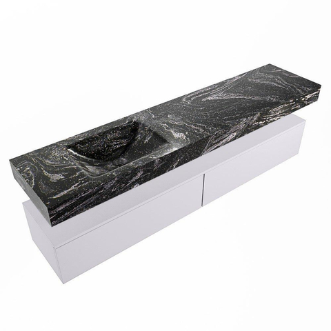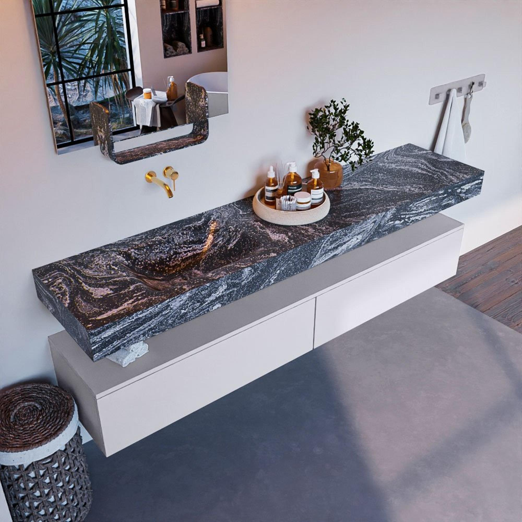 MONDIAZ ALAN - DLUX Badkamermeubelset - 200cm - onderkast - Cale - 2 lades - vrijhangende wastafel - wasbak links - 0 kraangaten - Lava