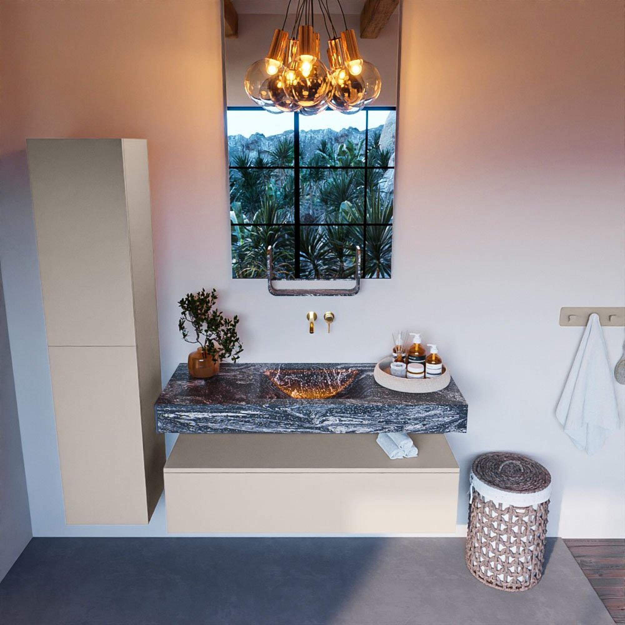 MONDIAZ ALAN - DLUX Badkamermeubelset - 120cm - onderkast - Linen - 1 lade - vrijhangende wastafel - wasbak midden - 0 kraangaten - Lava
