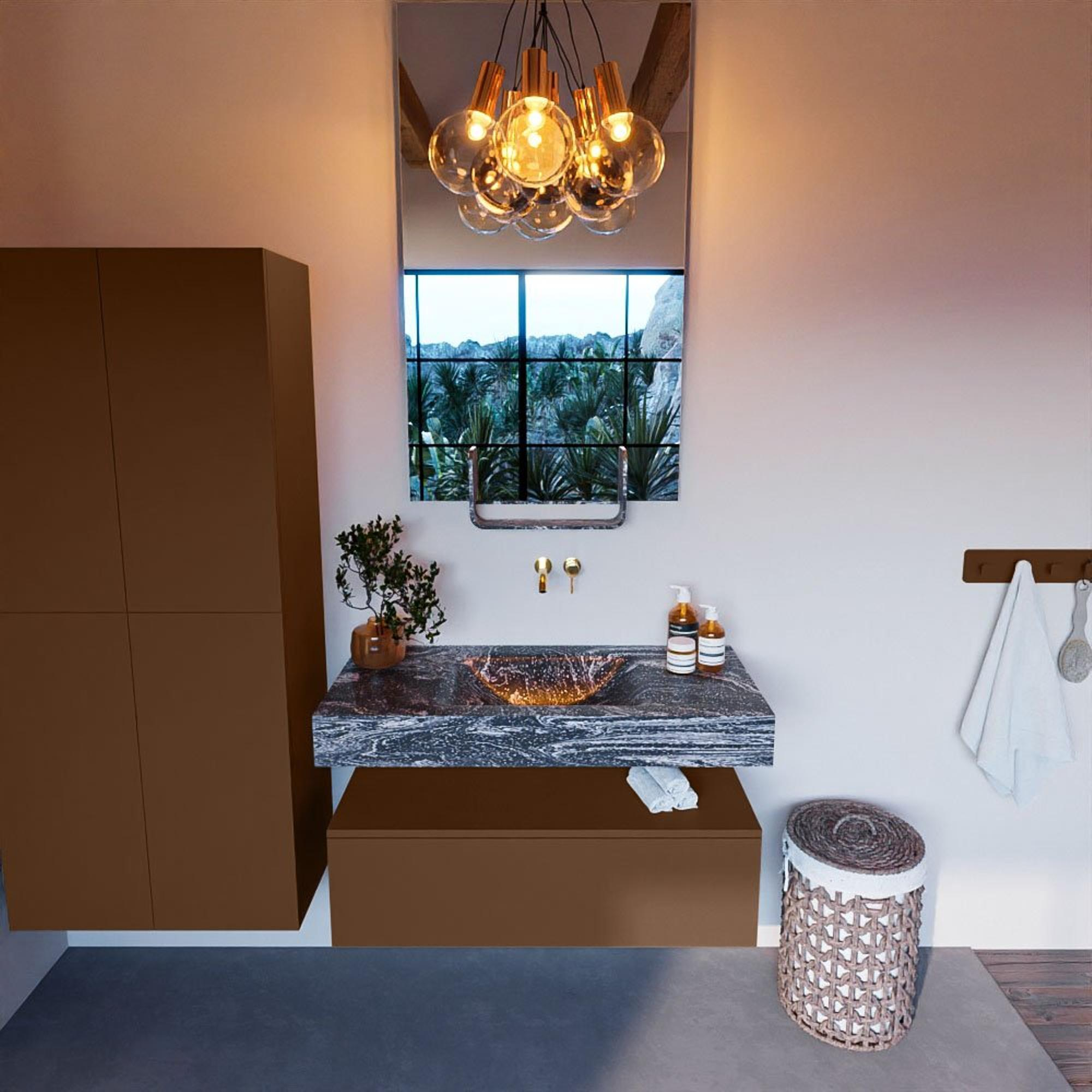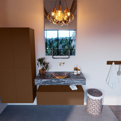 MONDIAZ ALAN - DLUX Badkamermeubelset - 100cm - onderkast - Rust - 1 lade - vrijhangende wastafel - wasbak midden - 0 kraangaten - Lava