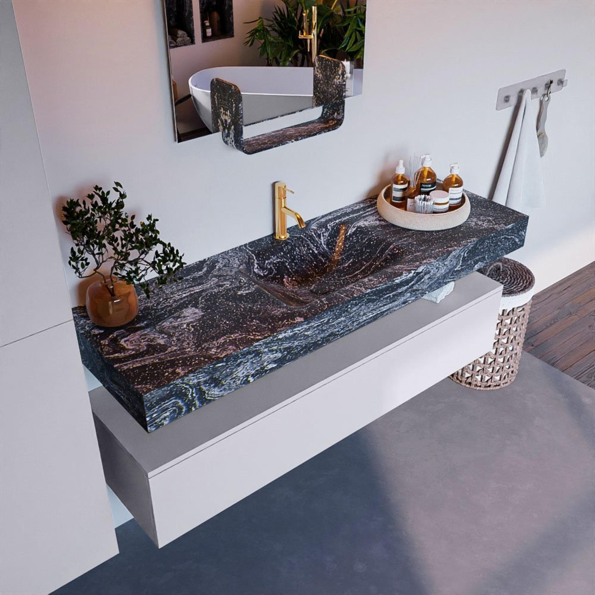 MONDIAZ ALAN - DLUX Badkamermeubelset - 150cm - onderkast - Cale - 1 lade - vrijhangende wastafel - wasbak midden - 1 kraangat - Lava