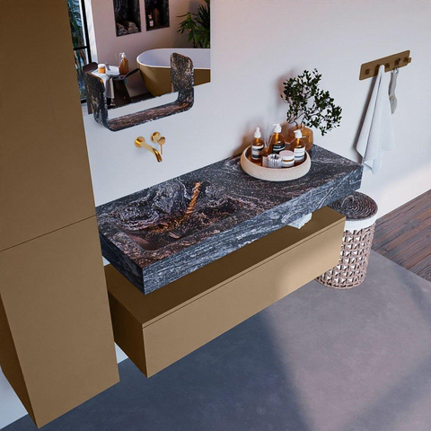 MONDIAZ ALAN - DLUX Badkamermeubelset - 120cm - onderkast - Oro - 1 lade - vrijhangende wastafel - wasbak links - 0 kraangaten - Lava