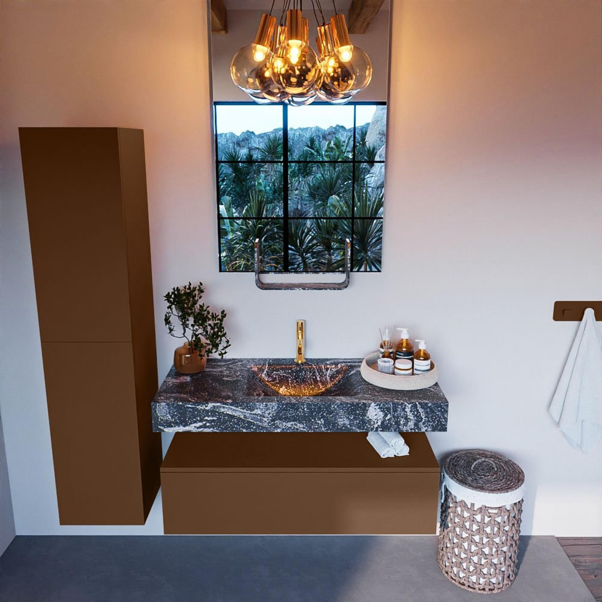 MONDIAZ ALAN - DLUX Badkamermeubelset - 110cm - onderkast - Rust - 1 lade - vrijhangende wastafel - wasbak midden - 1 kraangat - Lava