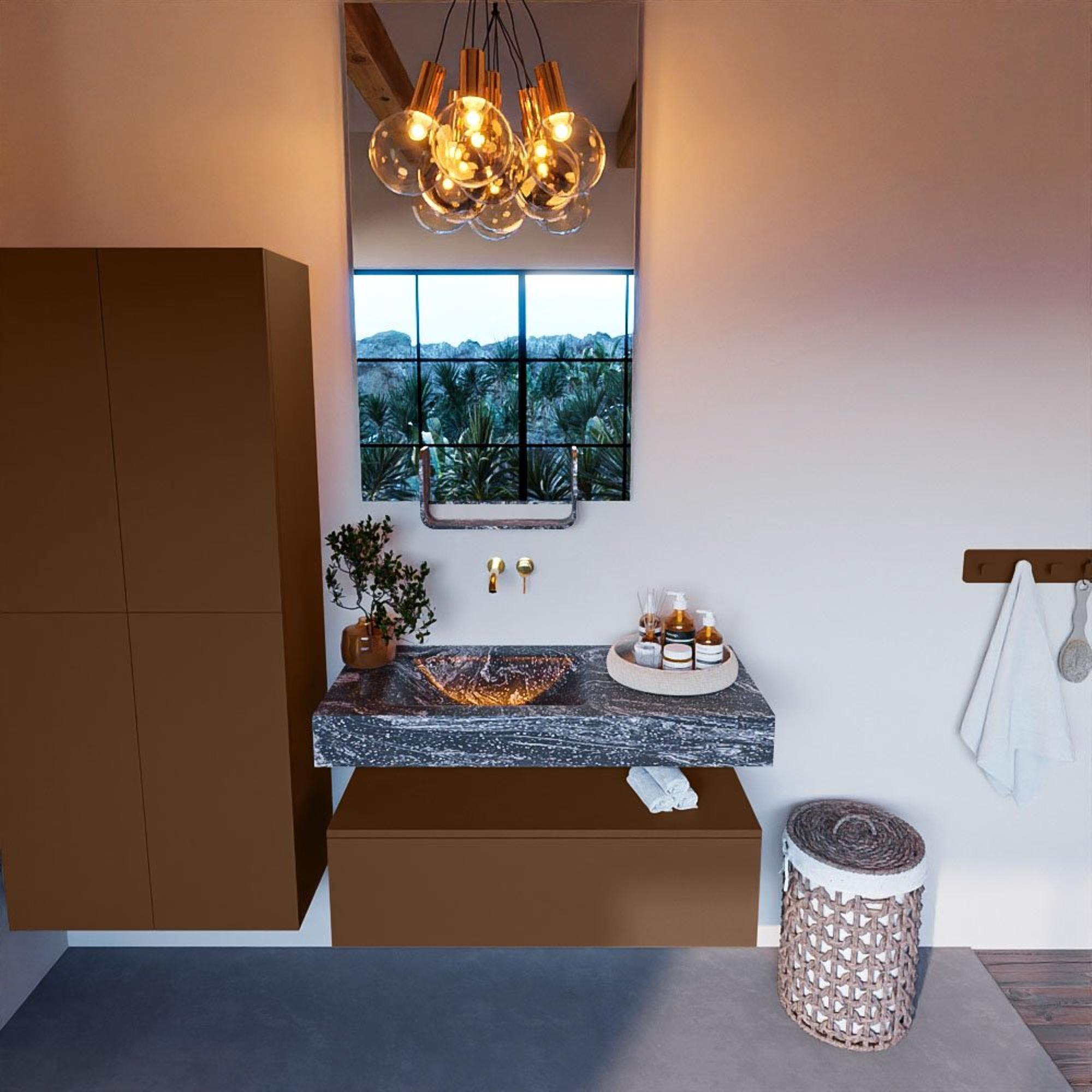 MONDIAZ ALAN - DLUX Badkamermeubelset - 100cm - onderkast - Rust - 1 lade - vrijhangende wastafel - wasbak links - 0 kraangaten - Lava