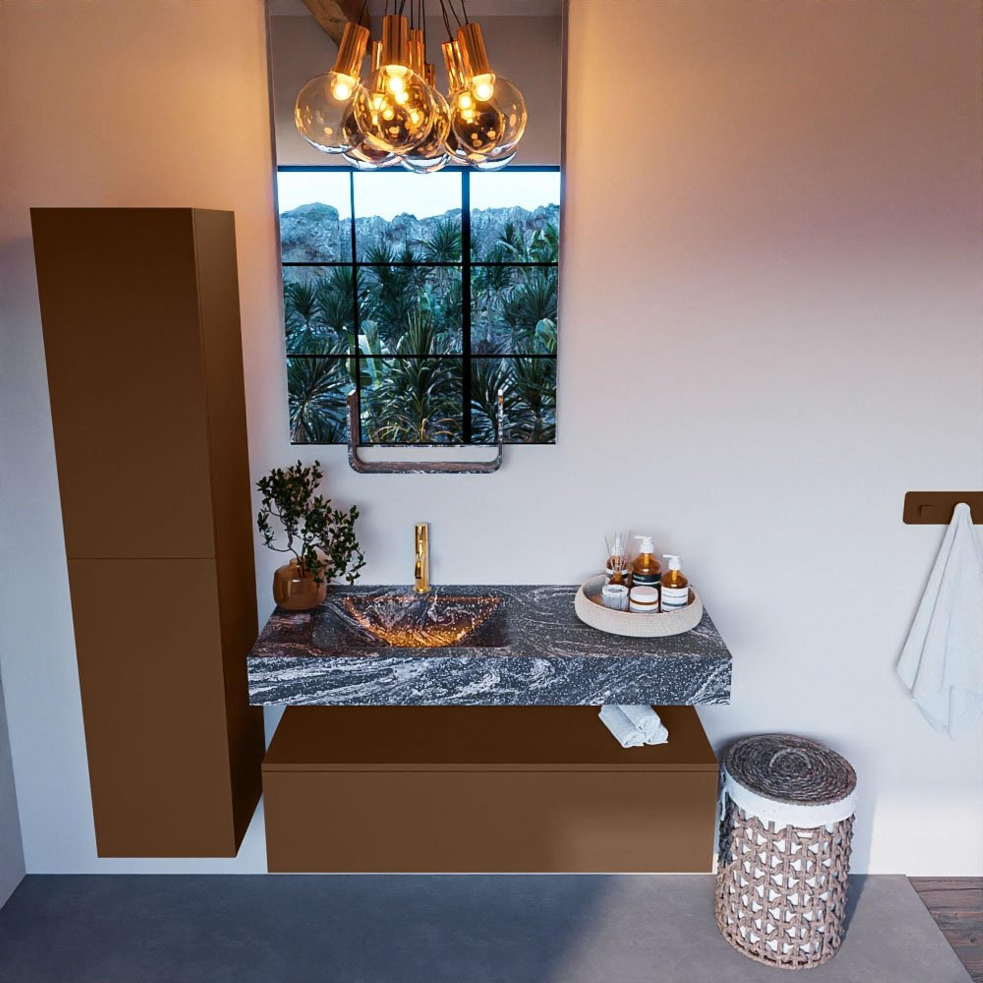 MONDIAZ ALAN - DLUX Badkamermeubelset - 110cm - onderkast - Rust - 1 lade - vrijhangende wastafel - wasbak links - 1 kraangat - Lava