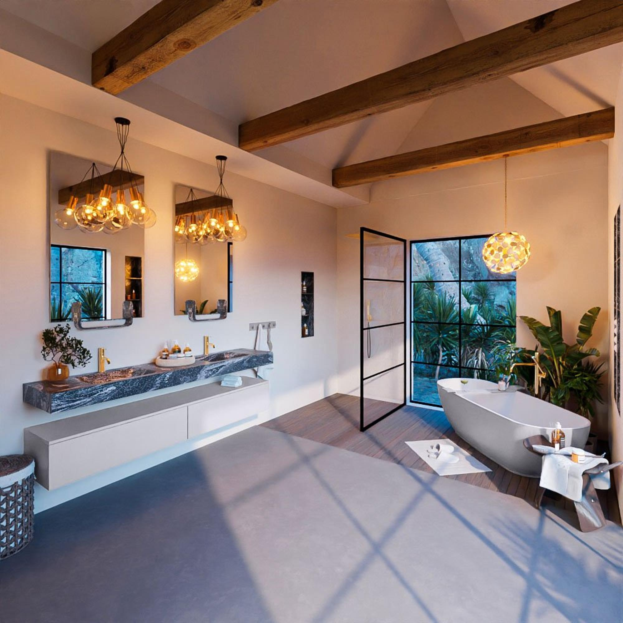 - Vrijhangende wastafel met 2 wasbakken