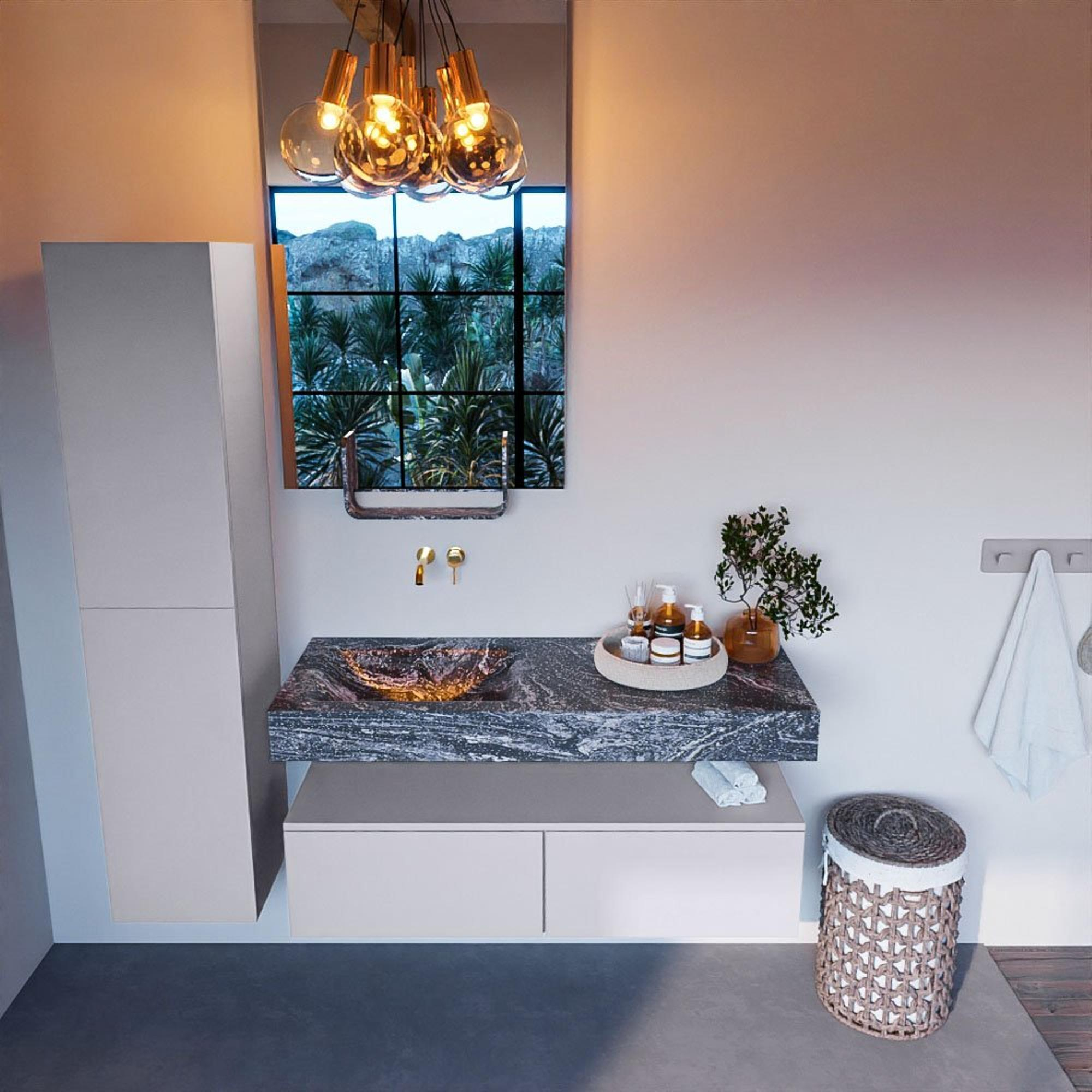 MONDIAZ ALAN - DLUX Badkamermeubelset - 120cm - onderkast - Cale - 2 lades - vrijhangende wastafel - wasbak links - 0 kraangaten - Lava