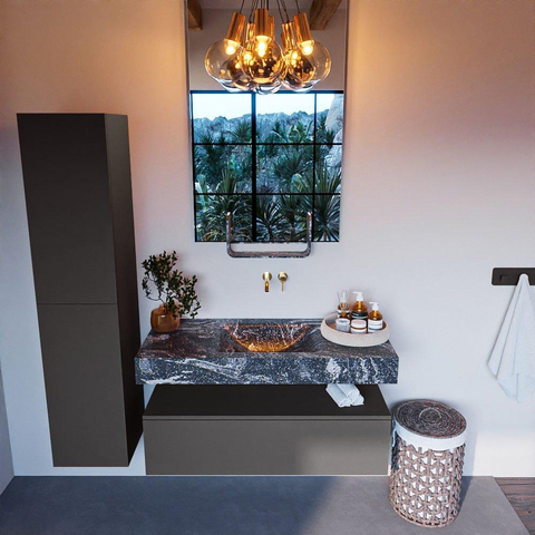 MONDIAZ ALAN - DLUX Badkamermeubelset - 110cm - onderkast - Dark grey - 1 lade - vrijhangende wastafel - wasbak midden - 0 kraangaten - Lava