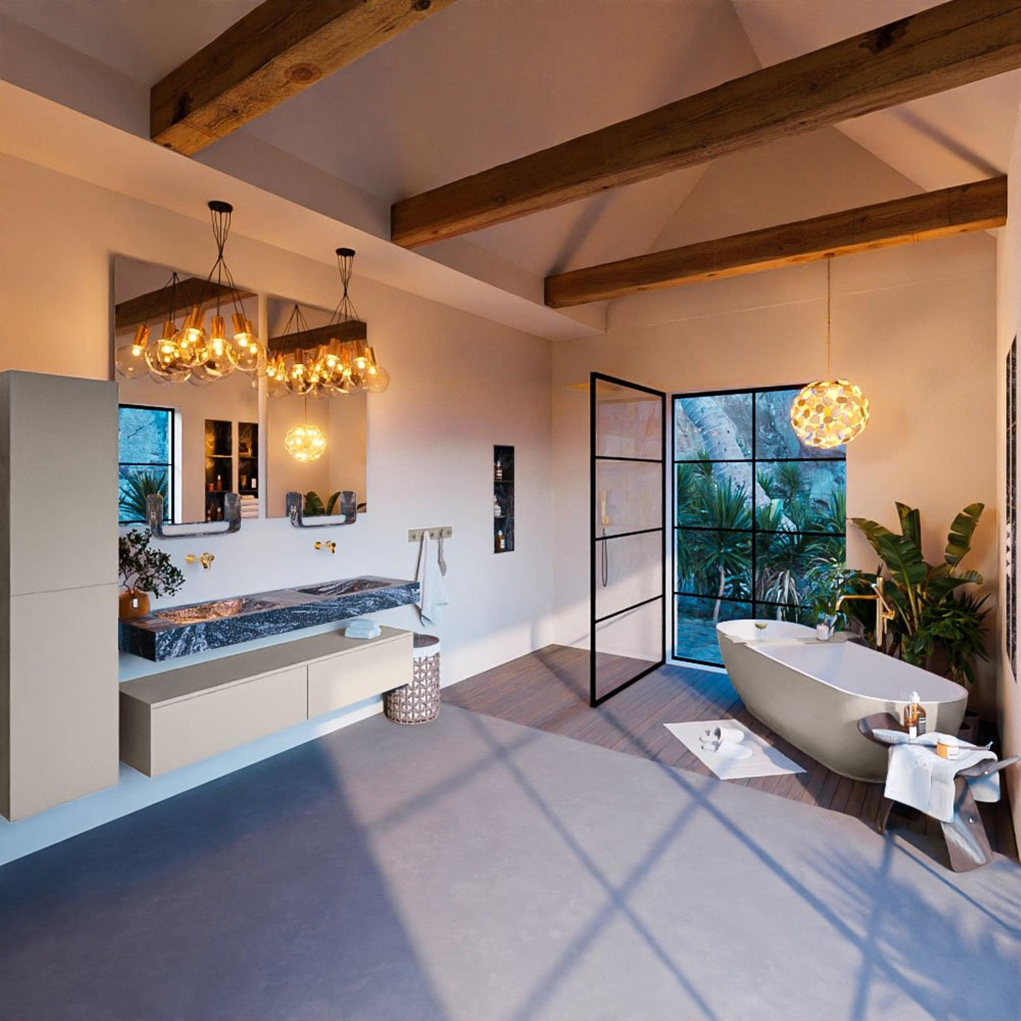 - Vrijhangende wastafel met 2 wasbakken