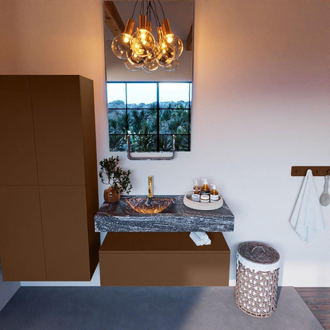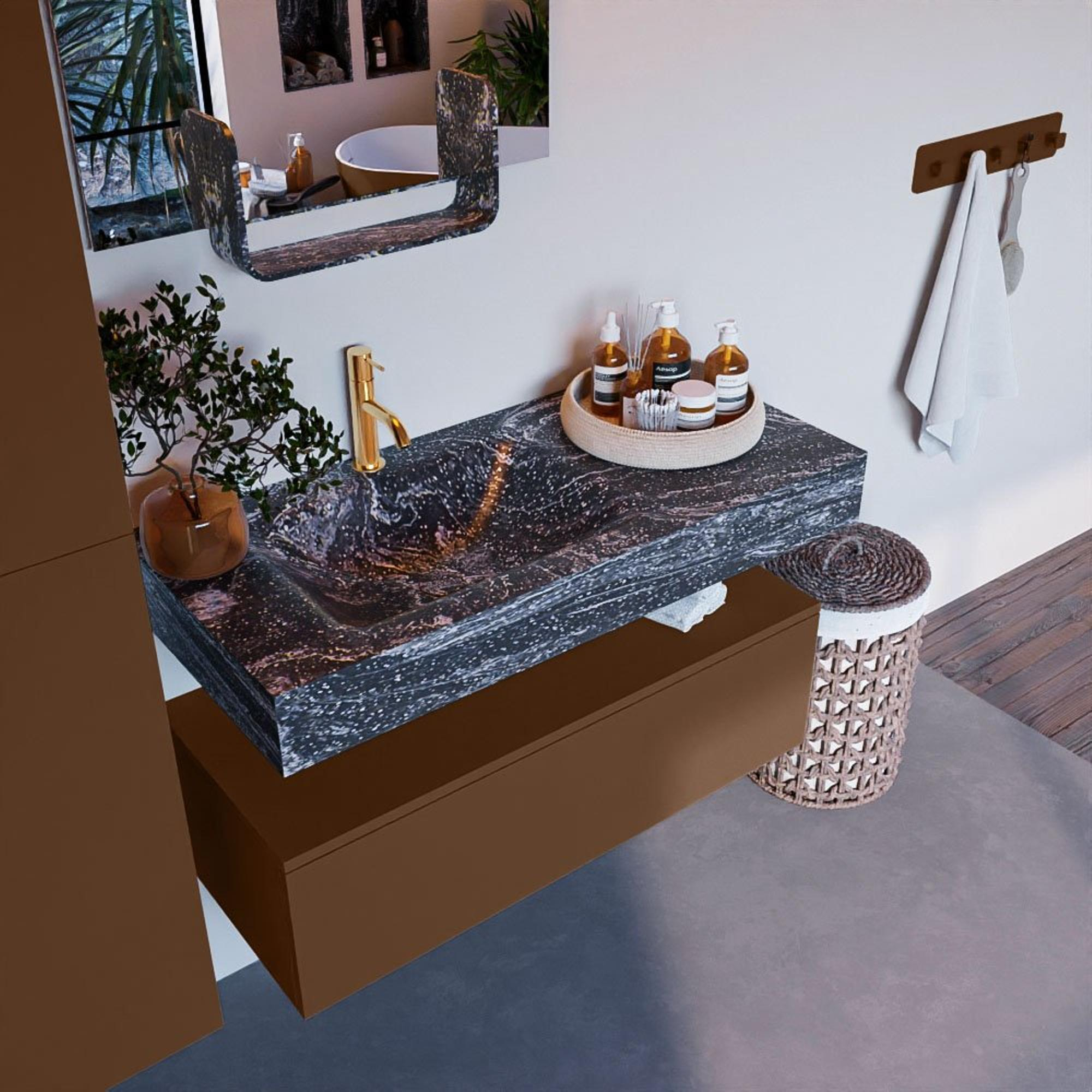 MONDIAZ ALAN - DLUX Badkamermeubelset - 100cm - onderkast - Rust - 1 lade - vrijhangende wastafel - wasbak links - 1 kraangat - Lava