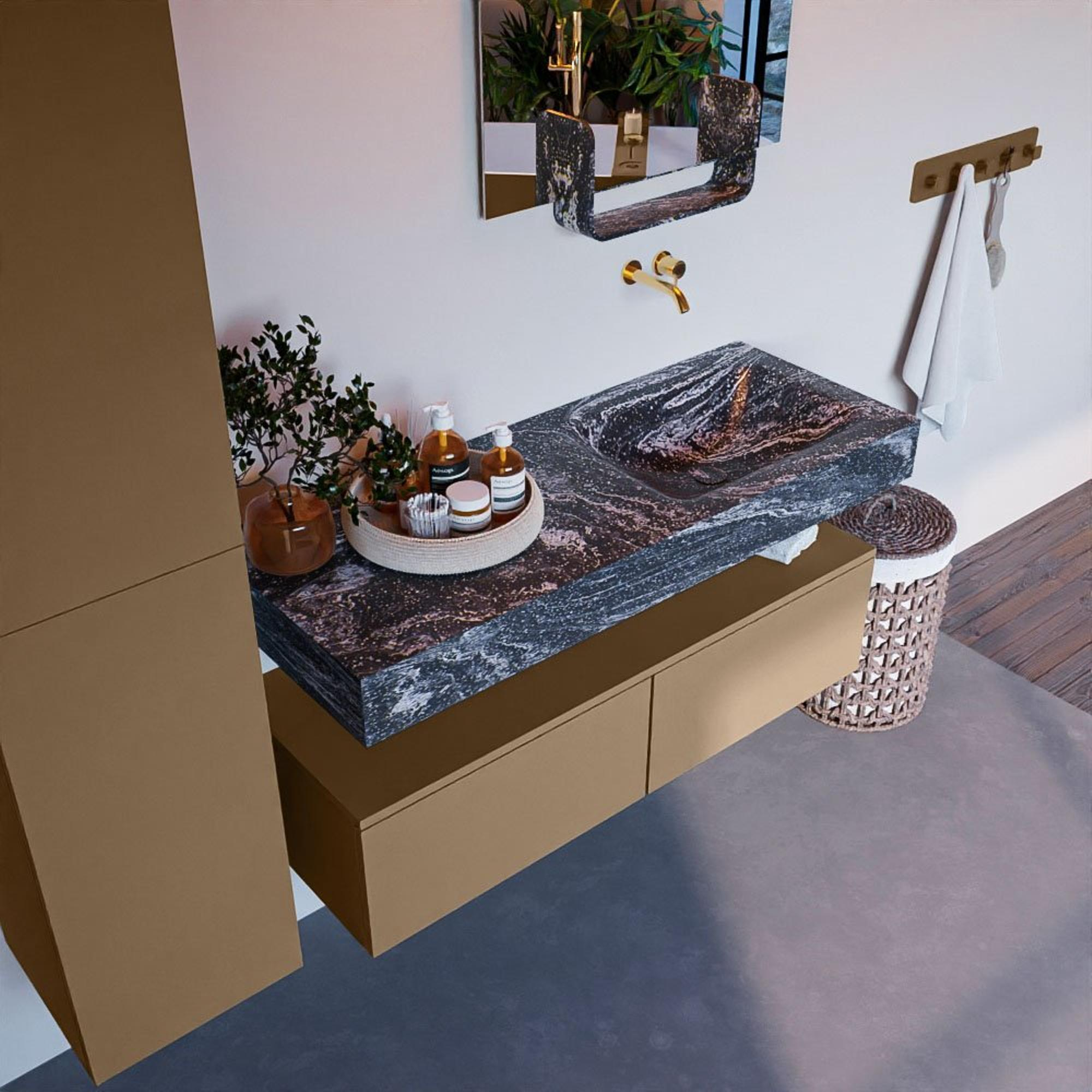 MONDIAZ ALAN - DLUX Badkamermeubelset - 120cm - onderkast - Oro - 2 lades - vrijhangende wastafel - wasbak rechts - 0 kraangaten - Lava