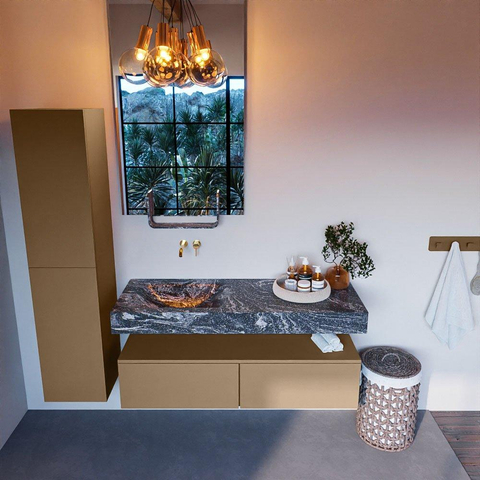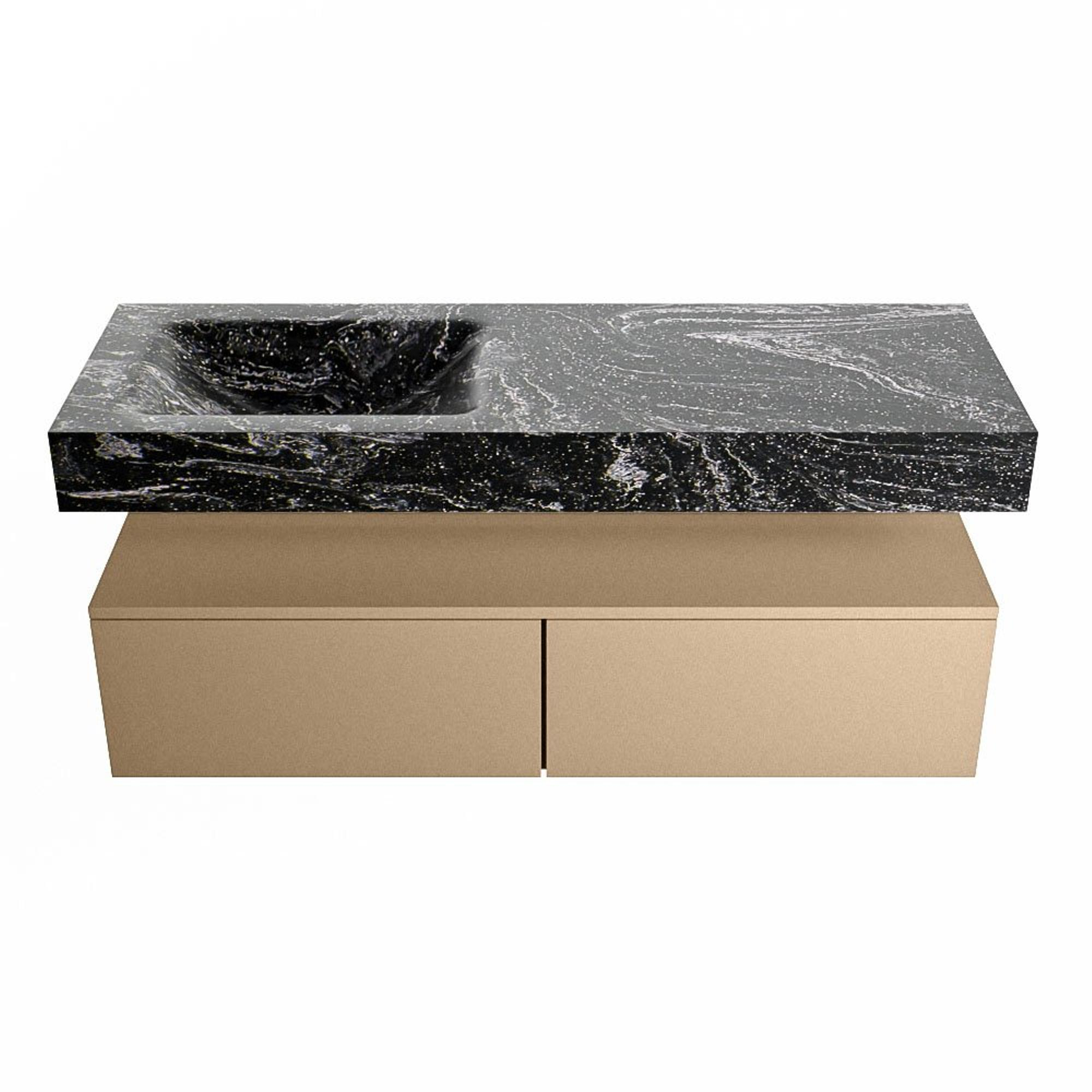 MONDIAZ ALAN - DLUX Badkamermeubelset - 130cm - onderkast - Oro - 2 lades - vrijhangende wastafel - wasbak links - 0 kraangaten - Lava
