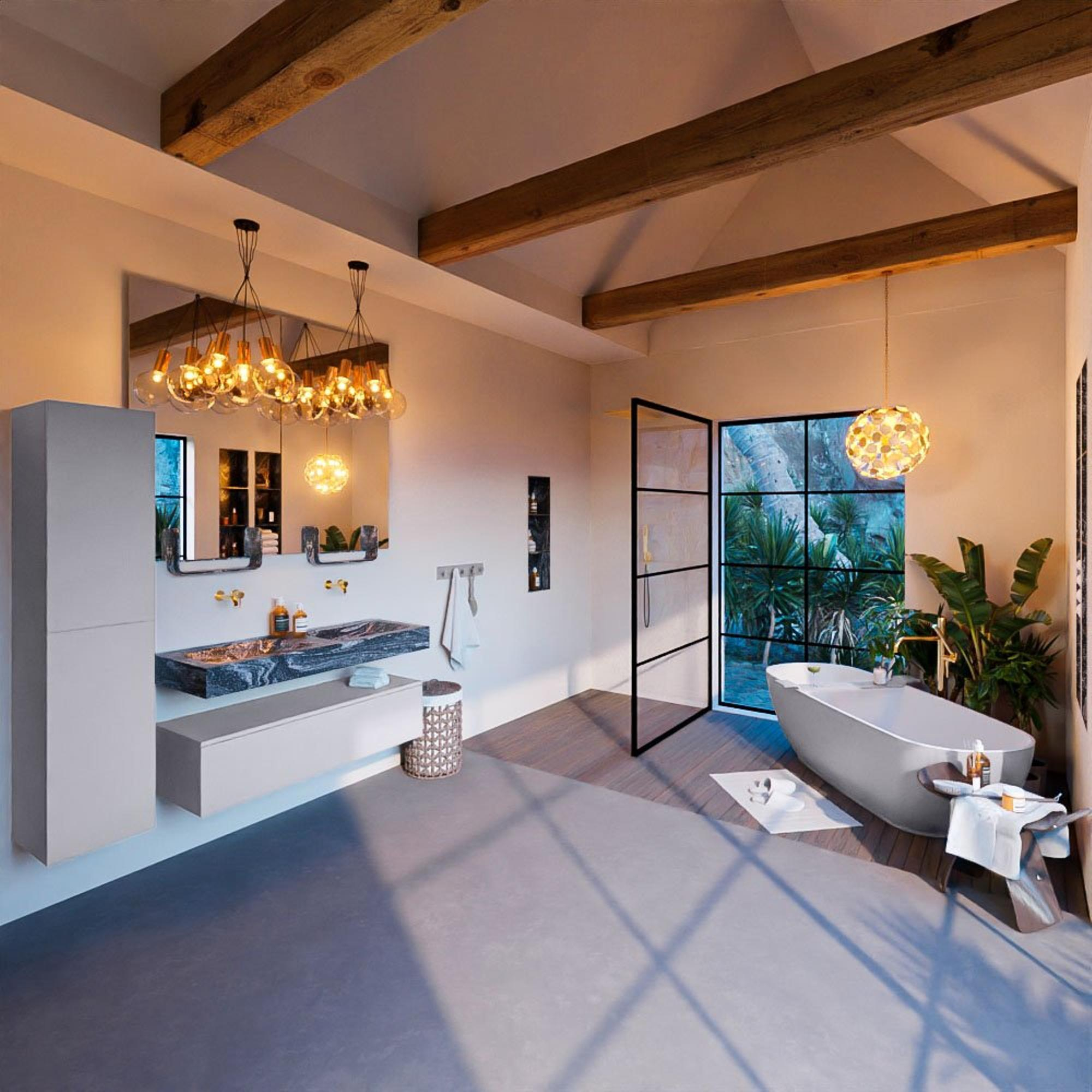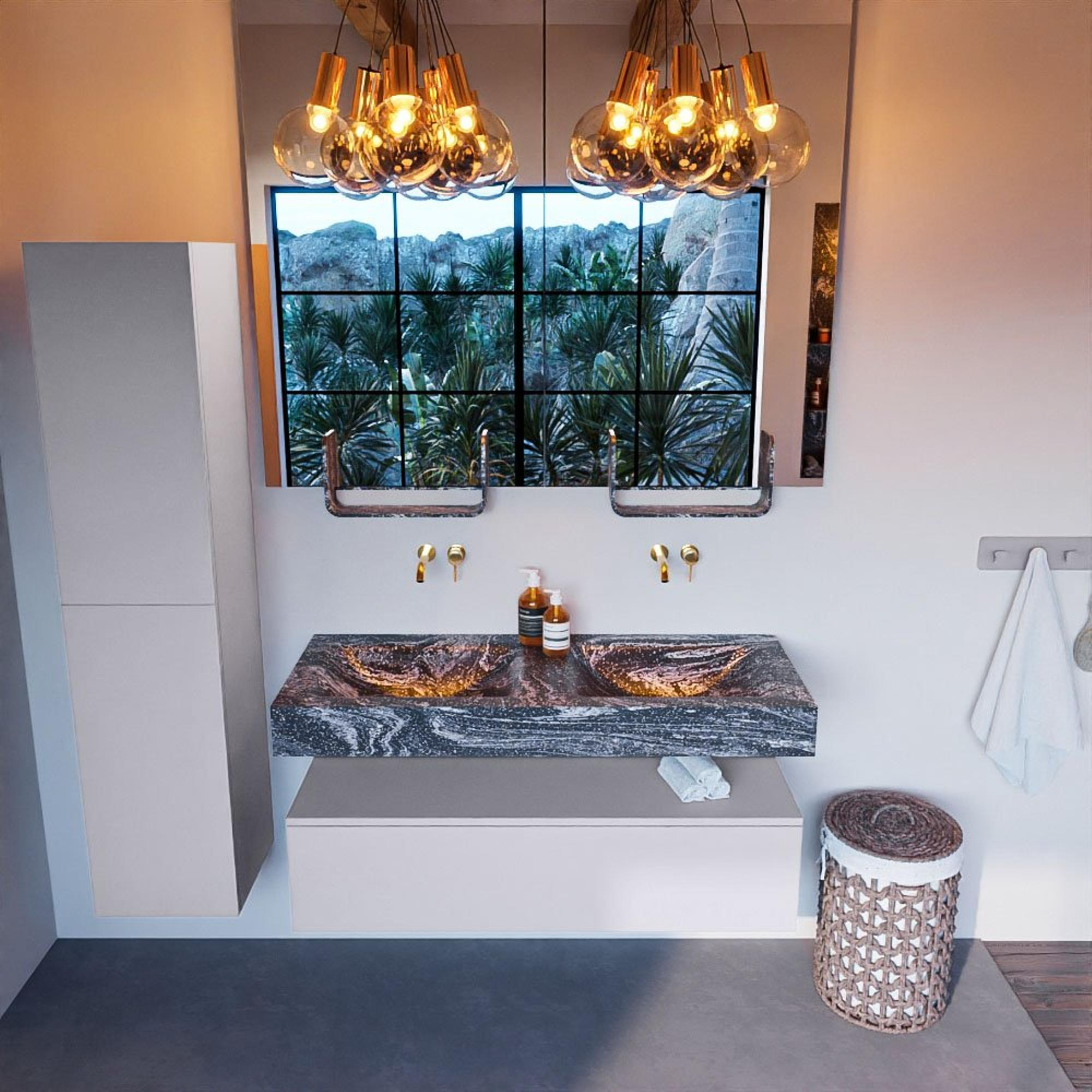 - Vrijhangende wastafel met 2 wasbakken