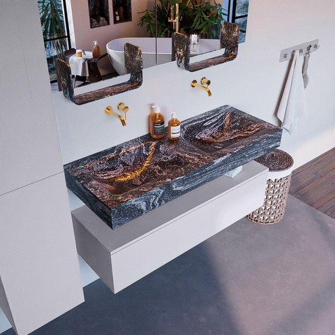 MONDIAZ ALAN - DLUX Badkamermeubelset - 120cm - onderkast - Cale - 1 lade - vrijhangende wastafel - 2 wasbakken - 0 kraangaten - Lava