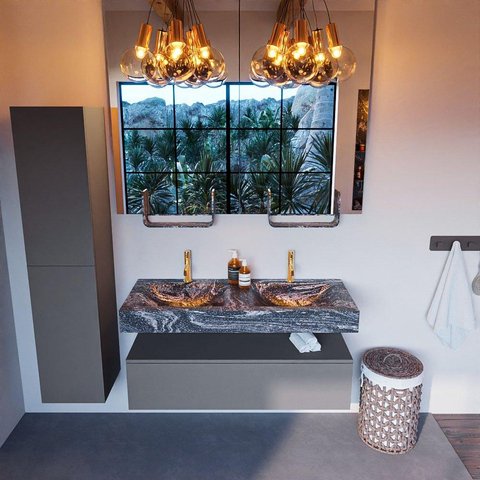 MONDIAZ ALAN - DLUX Badkamermeubelset - 120cm - onderkast - Plata - 1 lade - vrijhangende wastafel - 2 wasbakken - 2 kraangaten - Lava