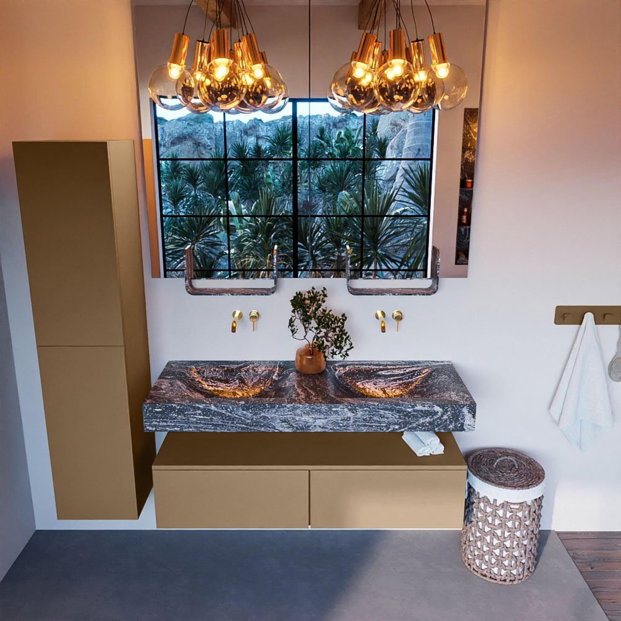 MONDIAZ ALAN - DLUX Badkamermeubelset - 130cm - onderkast - Oro - 2 lades - vrijhangende wastafel - 2 wasbakken - 0 kraangaten - Lava