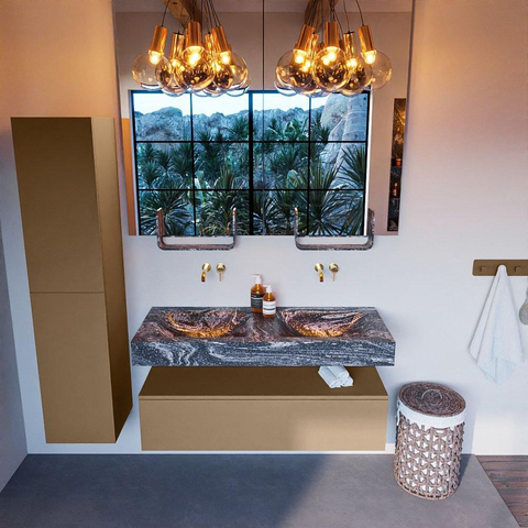 MONDIAZ ALAN - DLUX Badkamermeubelset - 120cm - onderkast - Oro - 1 lade - vrijhangende wastafel - 2 wasbakken - 0 kraangaten - Lava