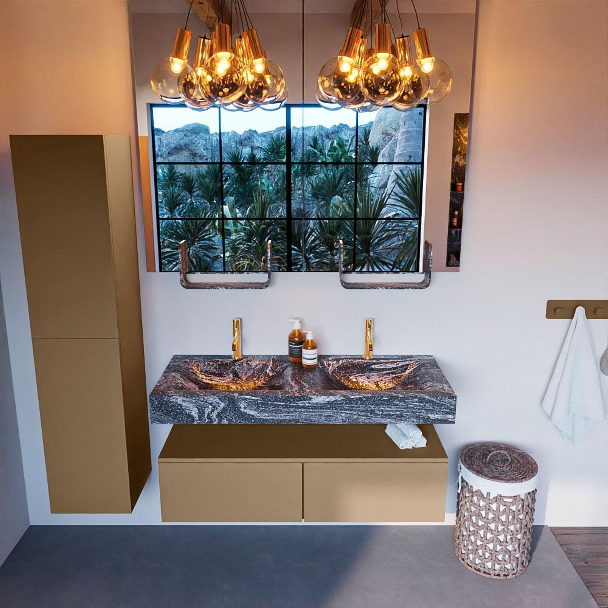 MONDIAZ ALAN - DLUX Badkamermeubelset - 120cm - onderkast - Oro - 2 lades - vrijhangende wastafel - 2 wasbakken - 2 kraangaten - Lava