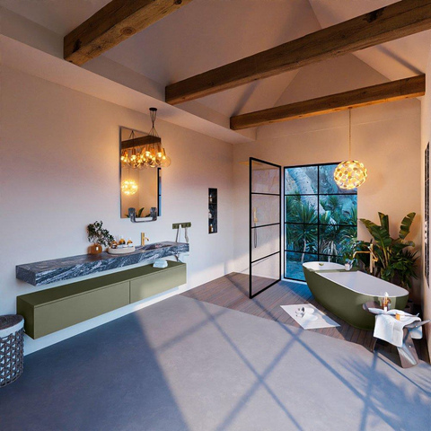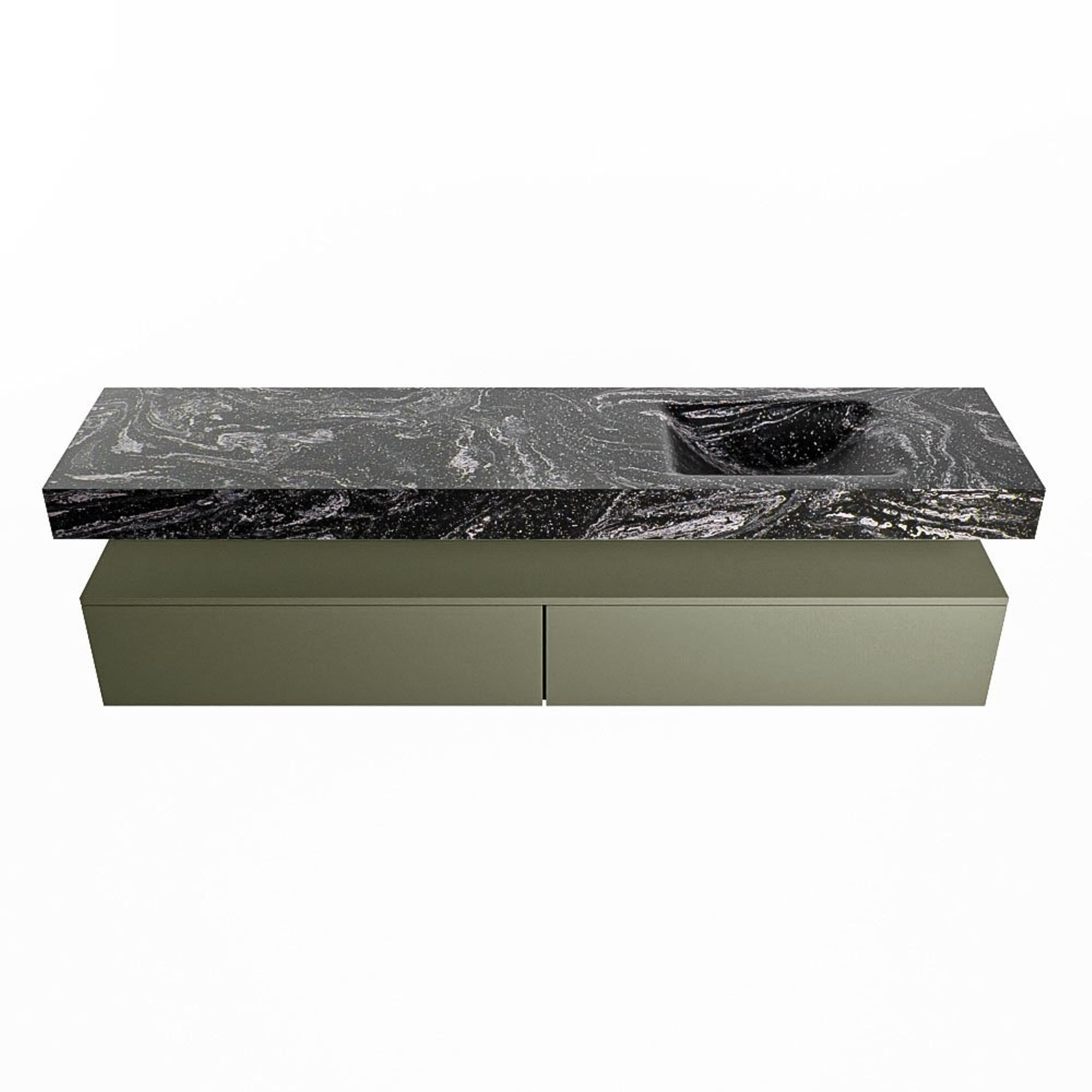 MONDIAZ ALAN - DLUX Badkamermeubelset - 200cm - onderkast - Army - 2 lades - vrijhangende wastafel - wasbak rechts - 1 kraangat - Lava