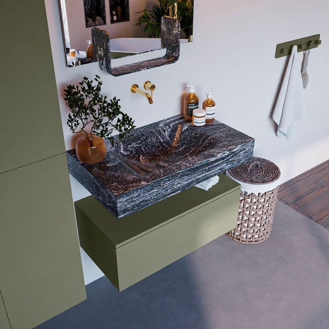 MONDIAZ ALAN - DLUX Badkamermeubelset - 80cm - onderkast - Army - 1 lade - vrijhangende wastafel - wasbak midden - 0 kraangaten - Lava