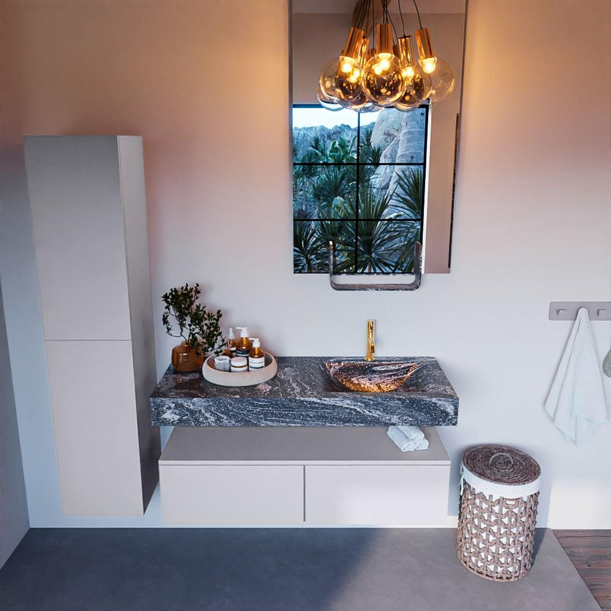 MONDIAZ ALAN - DLUX Badkamermeubelset - 120cm - onderkast - Cale - 2 lades - vrijhangende wastafel - wasbak rechts - 1 kraangat - Lava