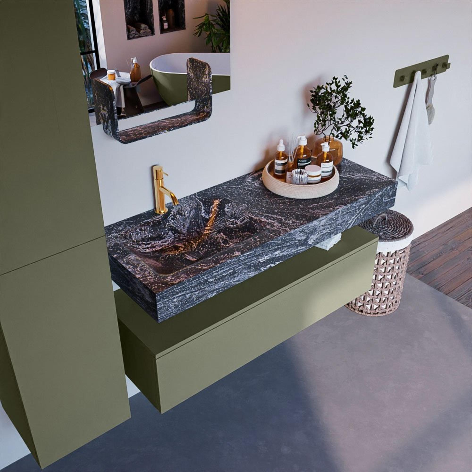 MONDIAZ ALAN - DLUX Badkamermeubelset - 120cm - onderkast - Army - 1 lade - vrijhangende wastafel - wasbak links - 1 kraangat - Lava
