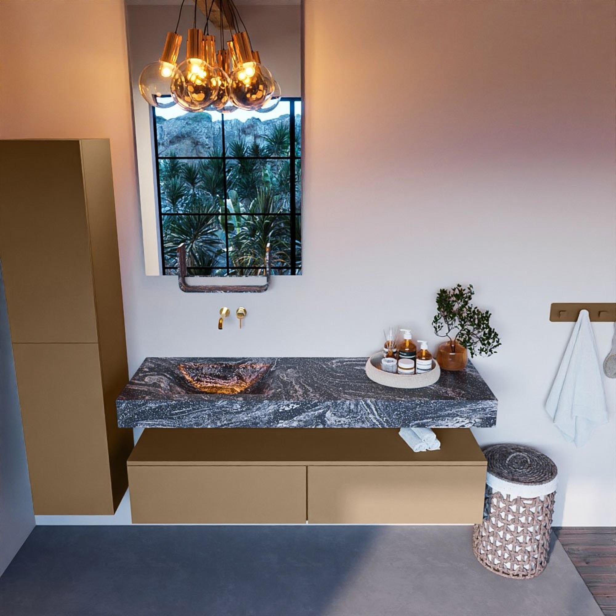 MONDIAZ ALAN - DLUX Badkamermeubelset - 150cm - onderkast - Oro - 2 lades - vrijhangende wastafel - wasbak links - 0 kraangaten - Lava