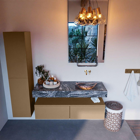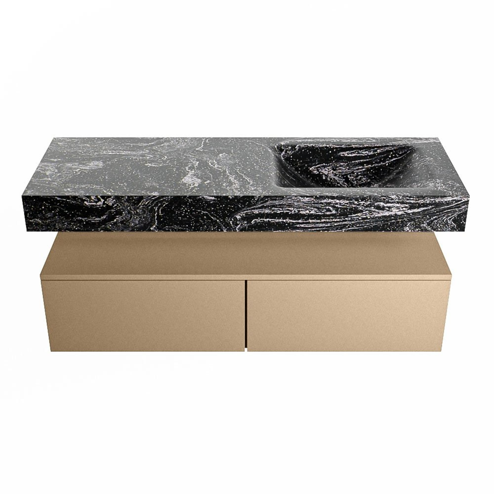 MONDIAZ ALAN - DLUX Badkamermeubelset - 130cm - onderkast - Oro - 2 lades - vrijhangende wastafel - wasbak rechts - 0 kraangaten - Lava