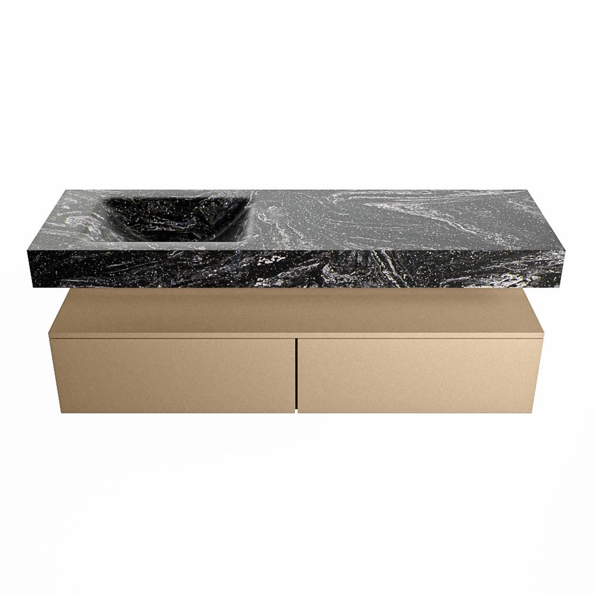 MONDIAZ ALAN - DLUX Badkamermeubelset - 150cm - onderkast - Oro - 2 lades - vrijhangende wastafel - wasbak links - 1 kraangat - Lava