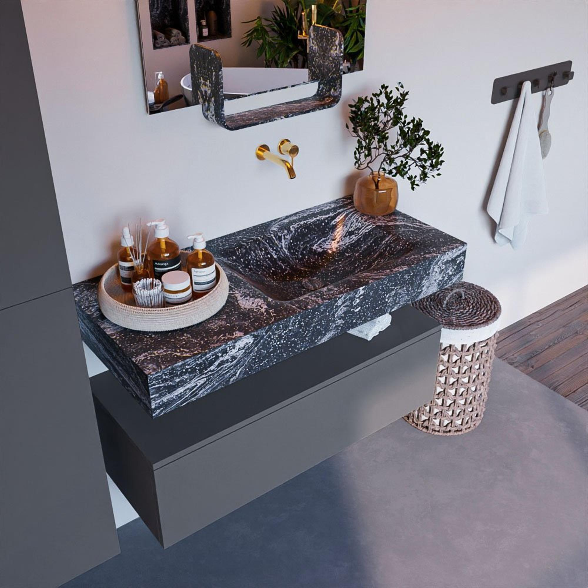 - Vrijhangende wastafel met wasbak rechts