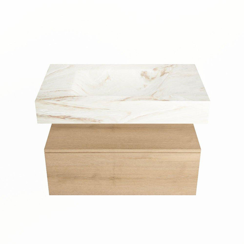 MONDIAZ ALAN - DLUX Badkamermeubelset - 80cm - onderkast - Washed Oak - 1 lade - vrijhangende wastafel - wasbak midden - 1 kraangat - Frappe