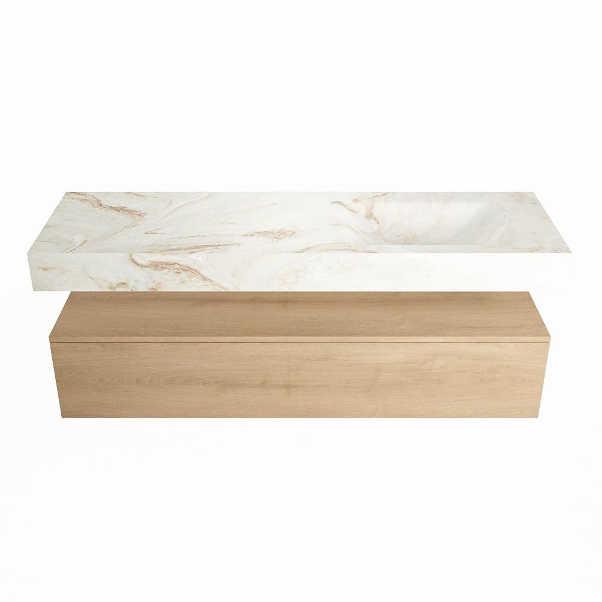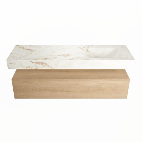 MONDIAZ ALAN - DLUX Badkamermeubelset - 150cm - onderkast - Washed Oak - 1 lade - vrijhangende wastafel - wasbak rechts - 0 kraangaten - Frappe