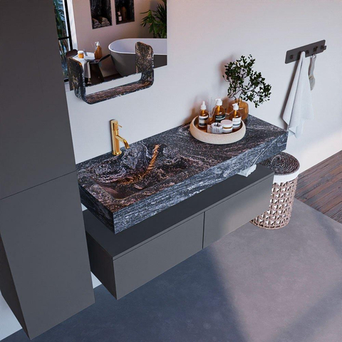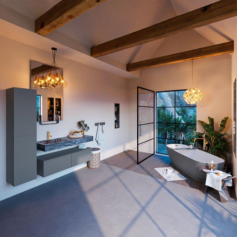 Dit badkamermeubelset straalt luxe uit in elke vezel. De hoogwaardige materialen en doordachte details zorgen voor een gevoel van weelde in de badkamer. De 2 lades bieden voldoende opbergruimte voor al je badkamerspullen, terwijl de vrijhangende wastafel een gevoel van ruimte creëert. Met de Lava afwerking is dit meubelstuk een echte eyecatcher.
