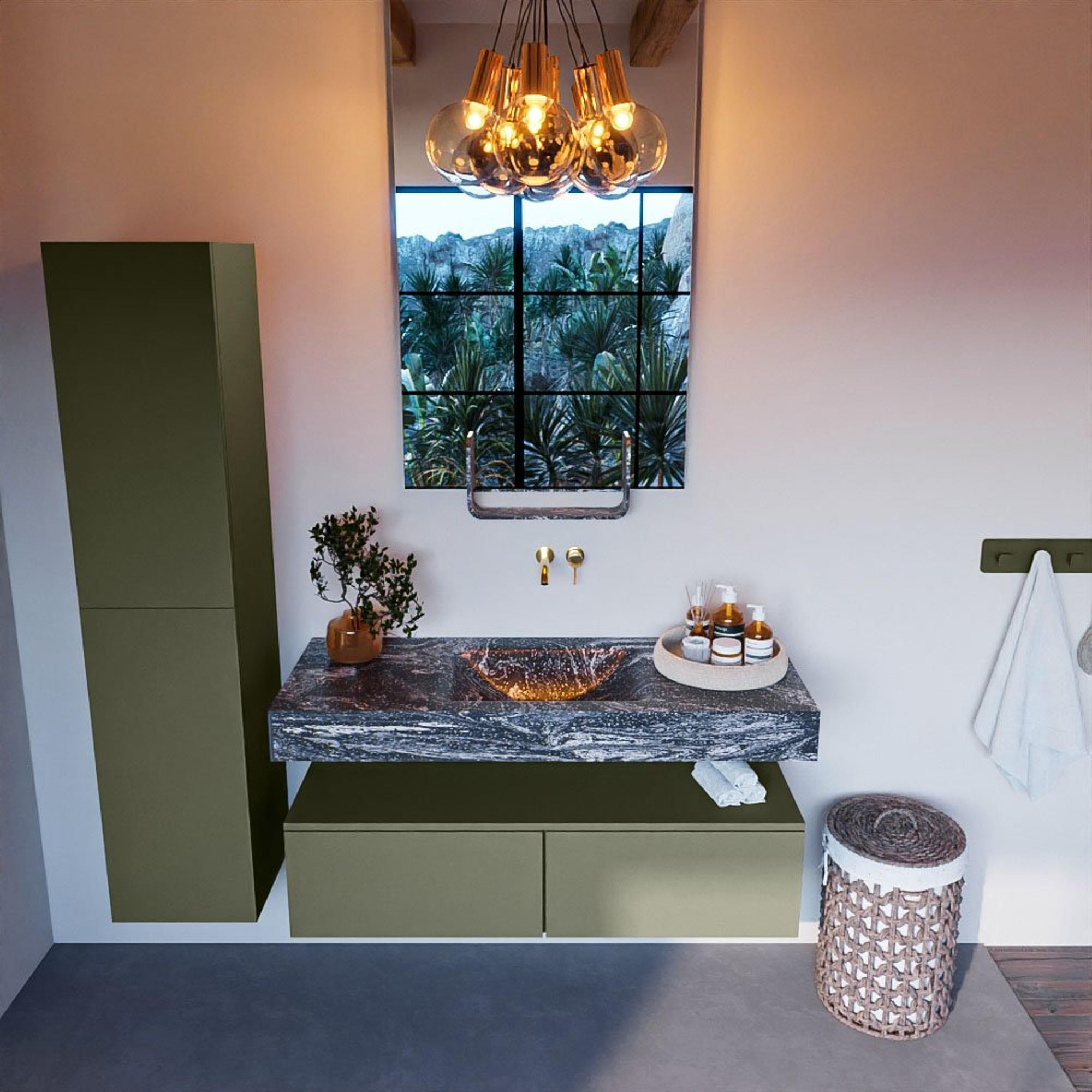 MONDIAZ ALAN - DLUX Badkamermeubelset - 120cm - onderkast - Army - 2 lades - vrijhangende wastafel - wasbak midden - 0 kraangaten - Lava