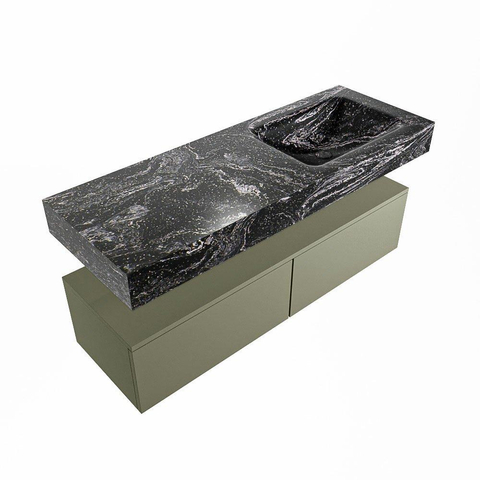 MONDIAZ ALAN - DLUX Badkamermeubelset - 130cm - onderkast - Army - 2 lades - vrijhangende wastafel - wasbak rechts - 0 kraangaten - Lava