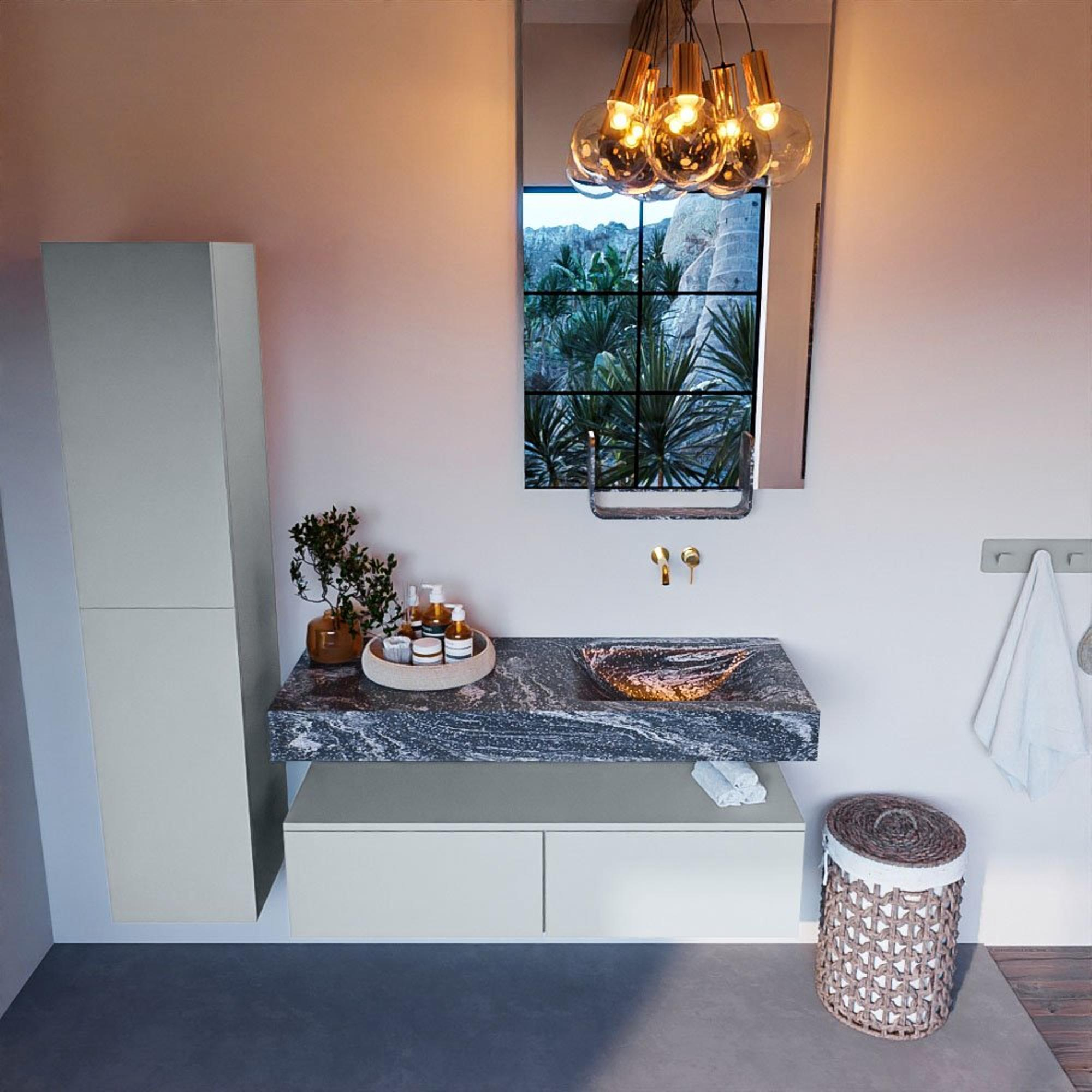 MONDIAZ ALAN - DLUX Badkamermeubelset - 120cm - onderkast - Clay - 2 lades - vrijhangende wastafel - wasbak rechts - 0 kraangaten - Lava