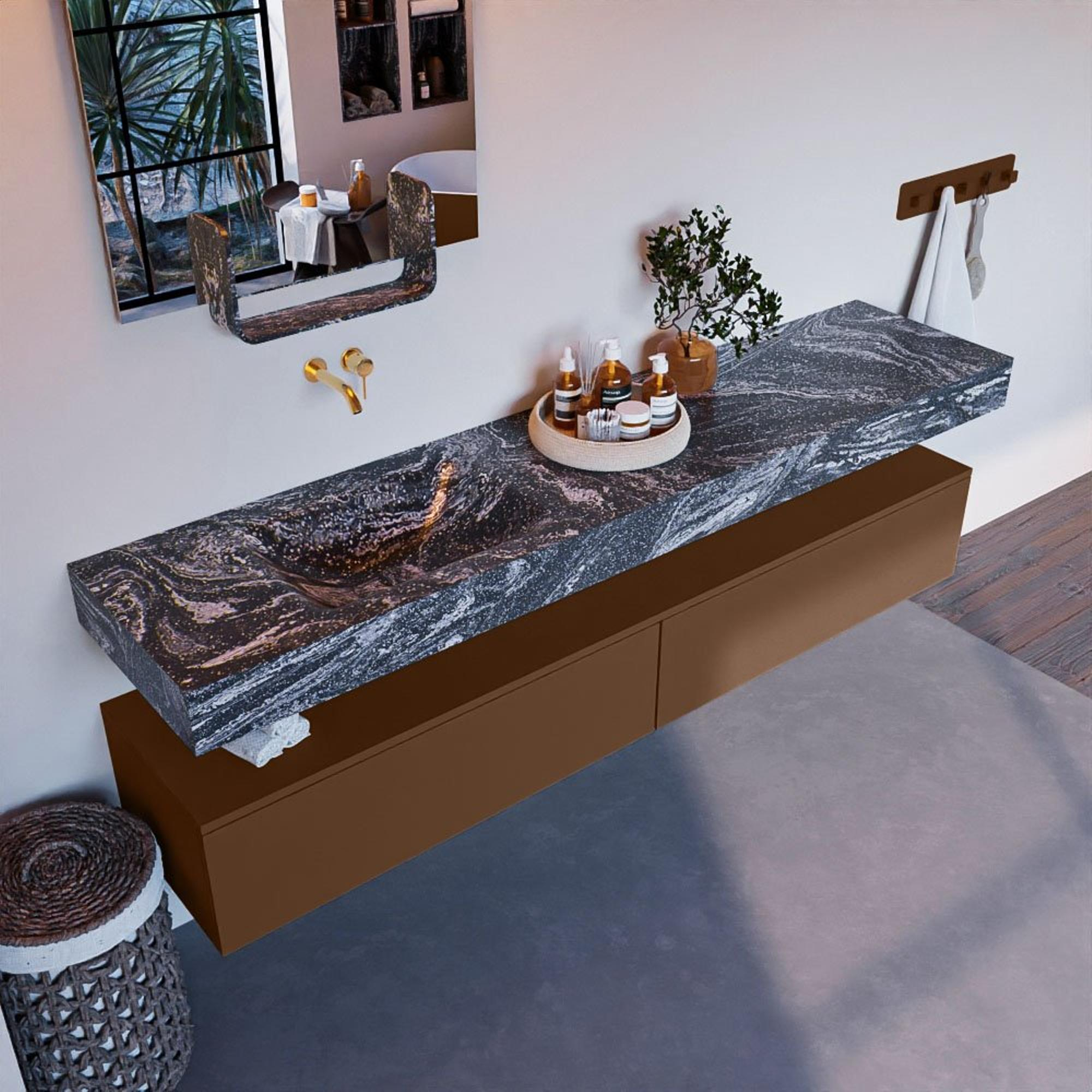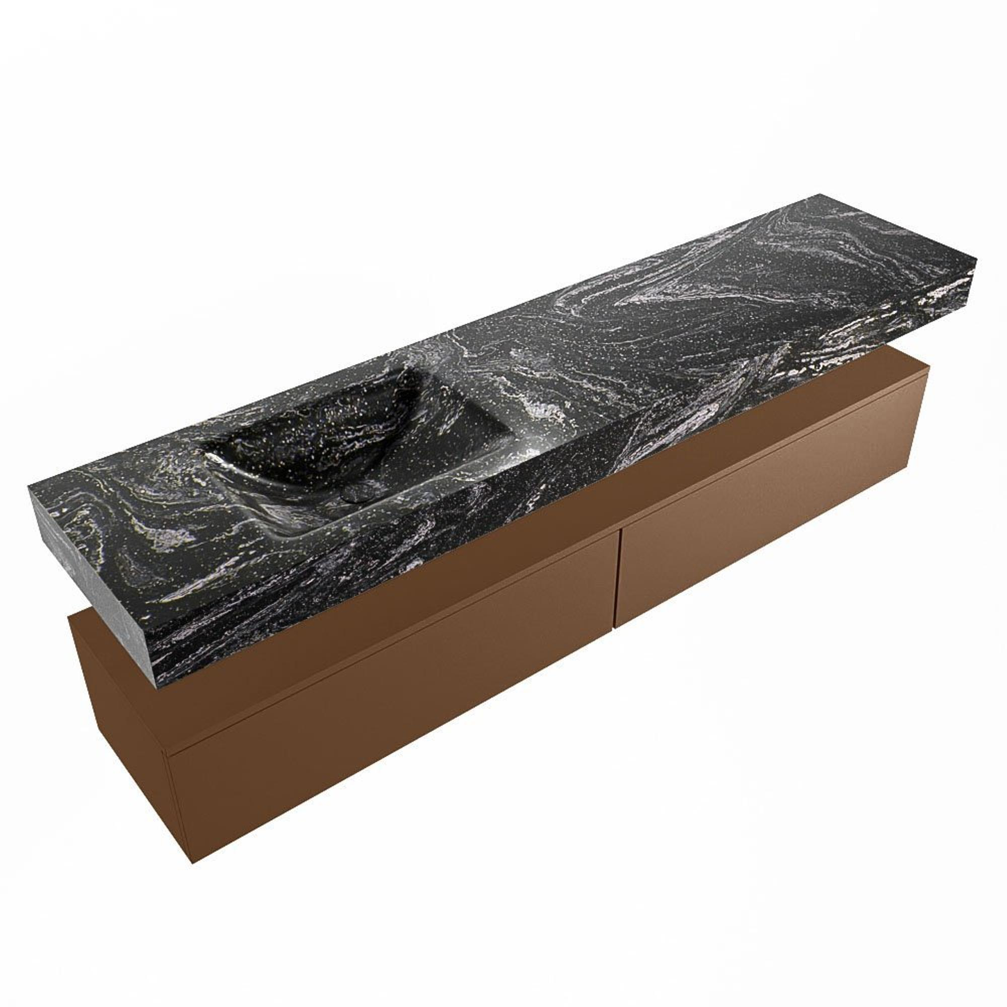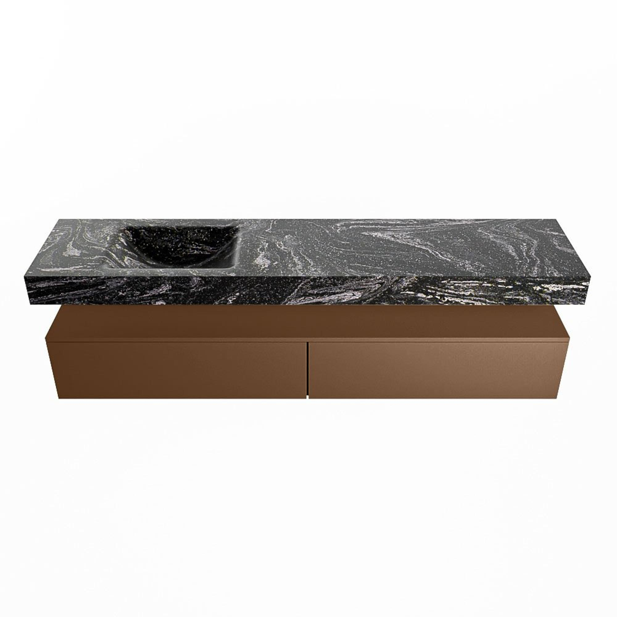 MONDIAZ ALAN - DLUX Badkamermeubelset - 200cm - onderkast - Rust - 2 lades - vrijhangende wastafel - wasbak links - 0 kraangaten - Lava