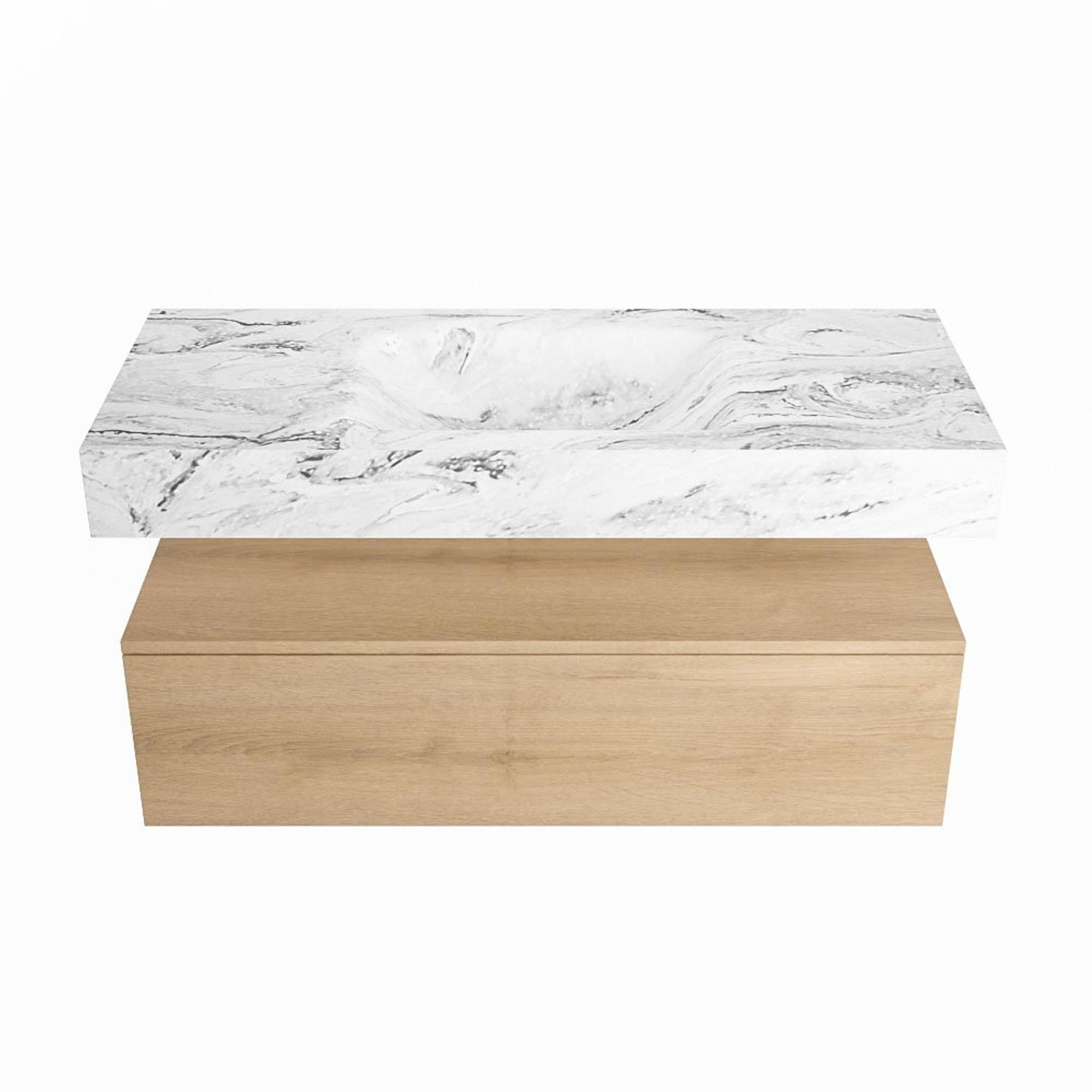 MONDIAZ ALAN - DLUX Badkamermeubelset - 110cm - onderkast - Washed Oak - 1 lade - vrijhangende wastafel - wasbak midden - 0 kraangaten - Glace