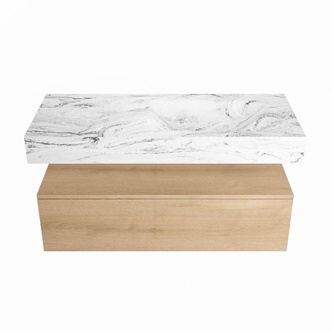MONDIAZ ALAN - DLUX Badkamermeubelset - 110cm - onderkast - Washed Oak - 1 lade - vrijhangende wastafel - wasbak rechts - 1 kraangat - Glace