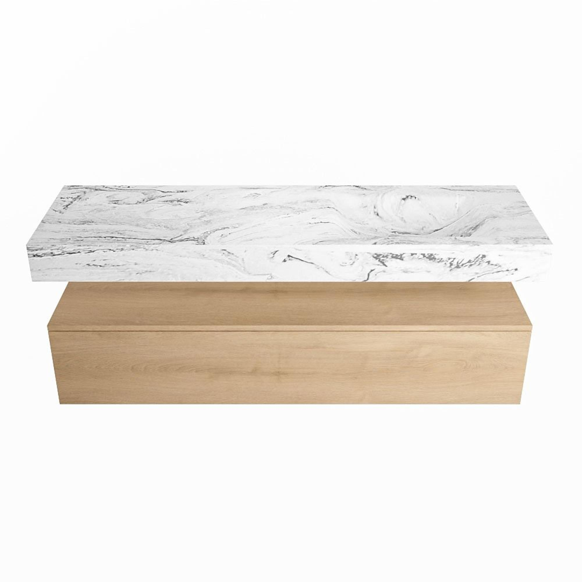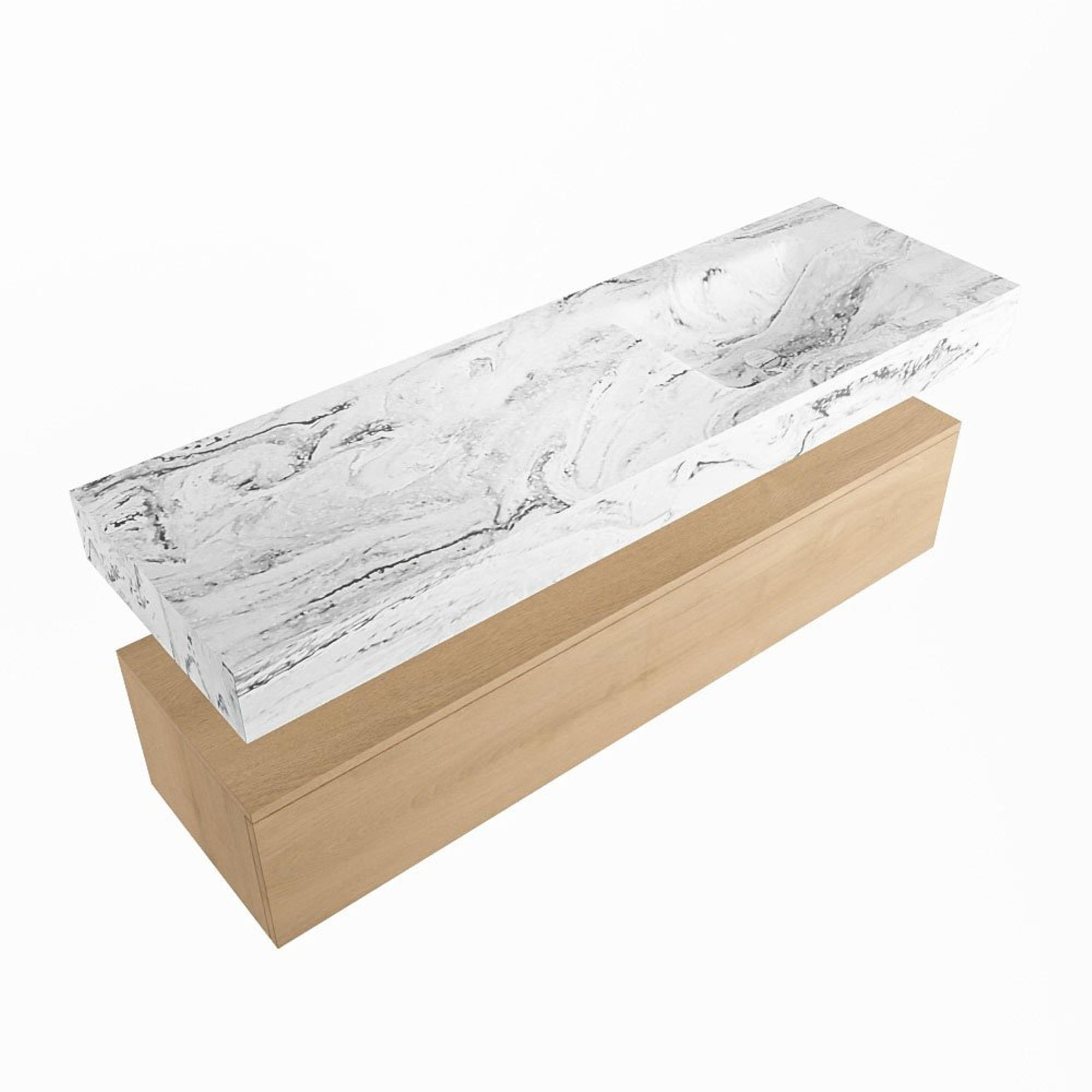 MONDIAZ ALAN - DLUX Badkamermeubelset - 150cm - onderkast - Washed Oak - 1 lade - vrijhangende wastafel - wasbak rechts - 0 kraangaten - Glace