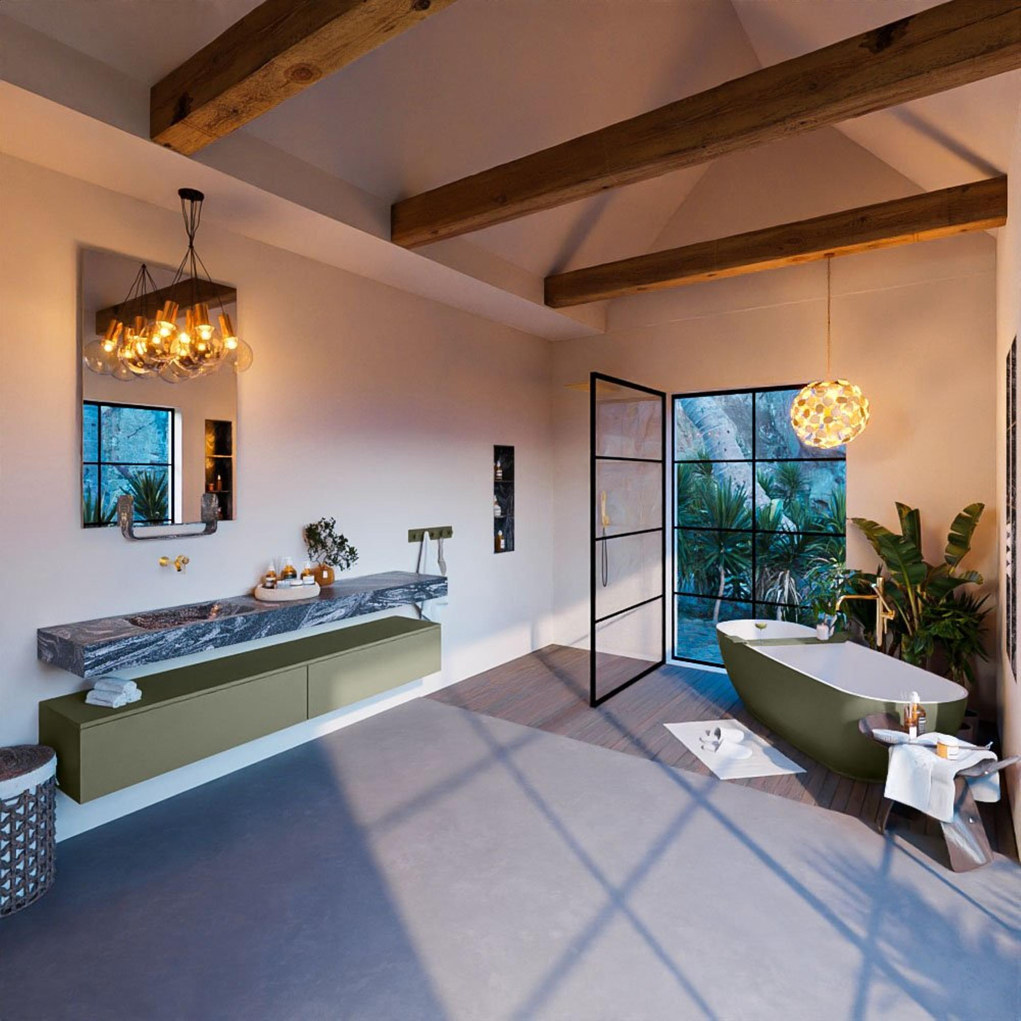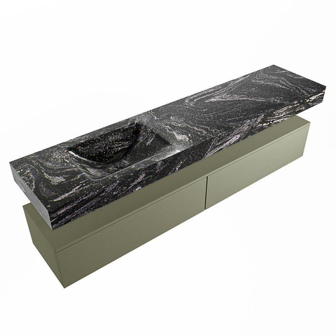 MONDIAZ ALAN - DLUX Badkamermeubelset - 200cm - onderkast - Army - 2 lades - vrijhangende wastafel - wasbak links - 0 kraangaten - Lava