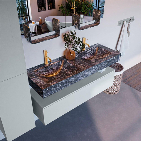 MONDIAZ ALAN - DLUX Badkamermeubelset - 130cm - onderkast - Clay - 1 lade - vrijhangende wastafel - 2 wasbakken - 2 kraangaten - Lava