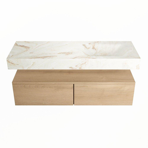 MONDIAZ ALAN - DLUX Badkamermeubelset - 130cm - onderkast - Washed Oak - 2 lades - vrijhangende wastafel - wasbak rechts - 0 kraangaten - Frappe