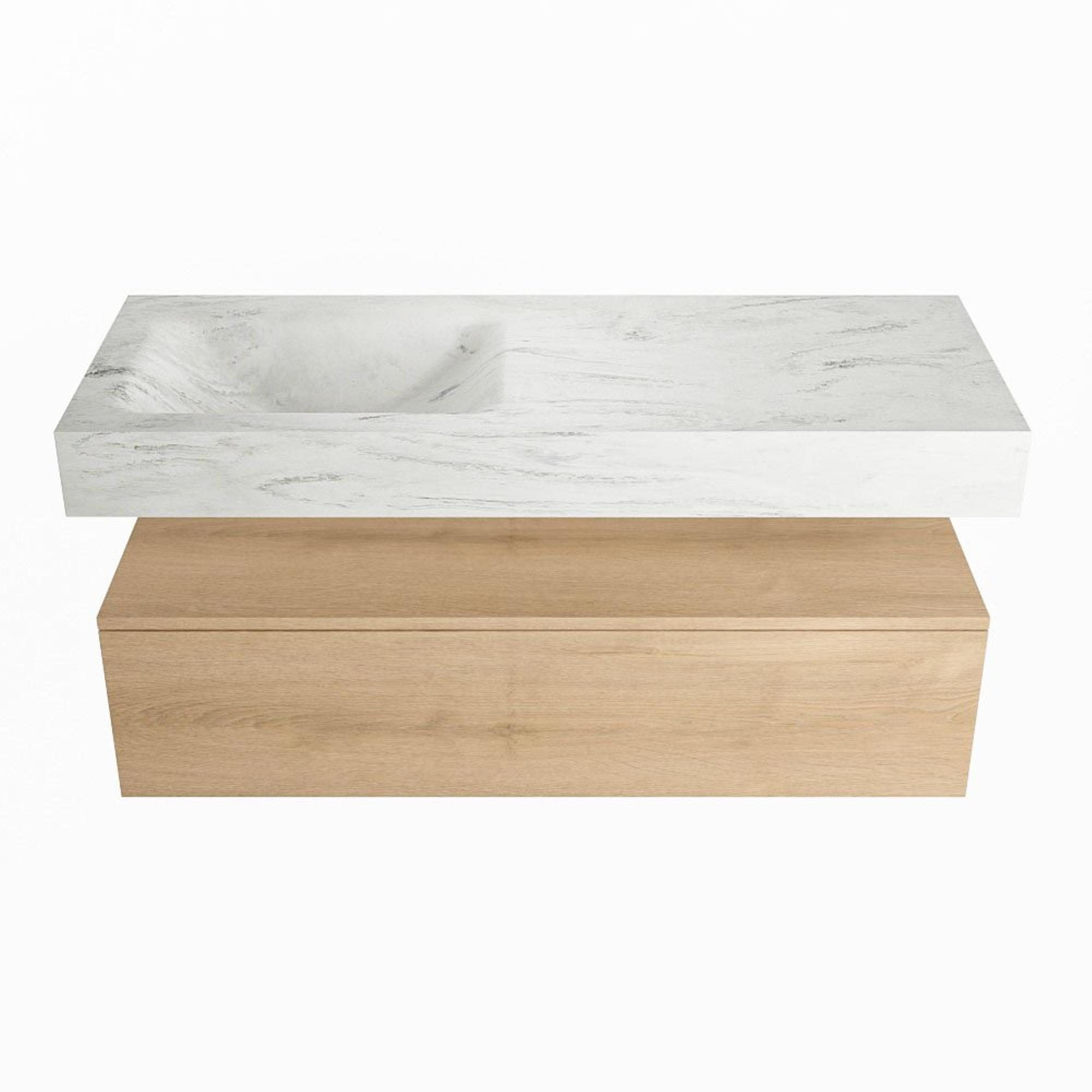 MONDIAZ ALAN - DLUX Badkamermeubelset - 120cm - onderkast - Washed Oak - 1 lade - vrijhangende wastafel - wasbak links - 1 kraangat - Opalo