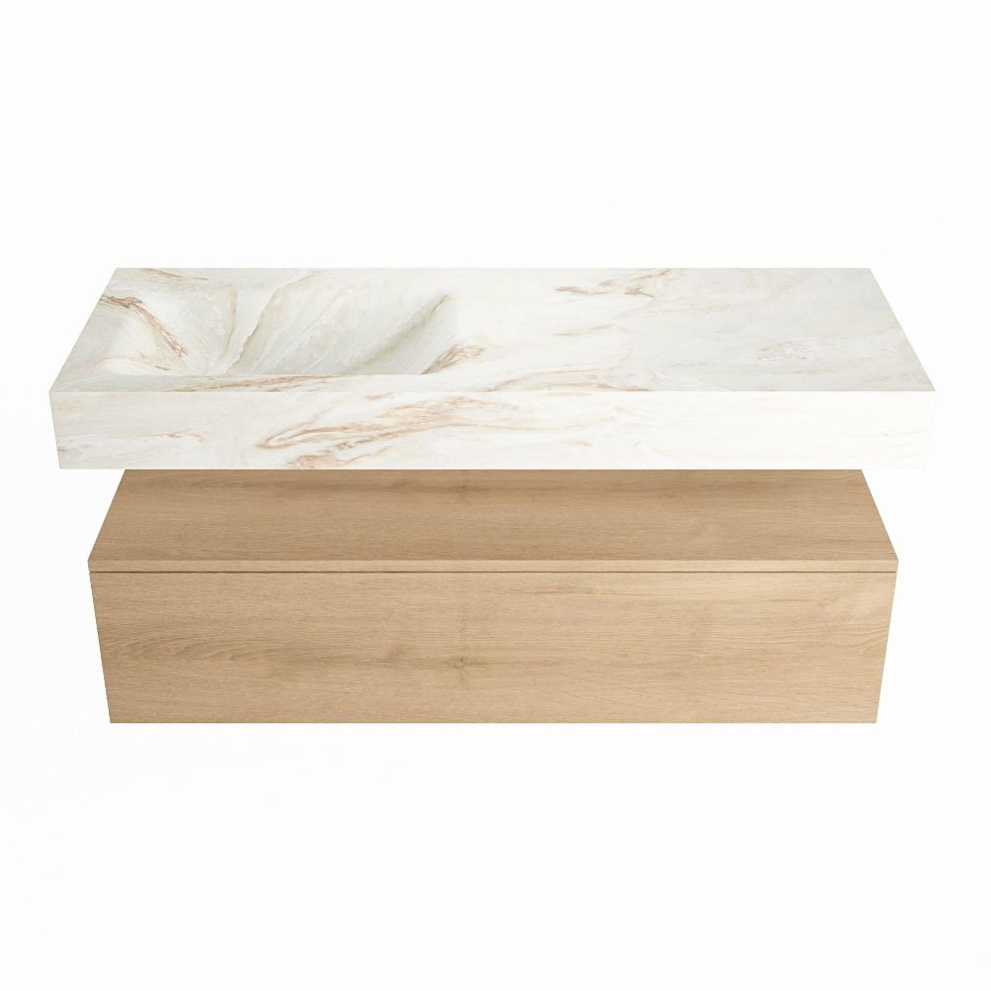MONDIAZ ALAN - DLUX Badkamermeubelset - 120cm - onderkast - Washed Oak - 1 lade - vrijhangende wastafel - wasbak links - 0 kraangaten - Frappe