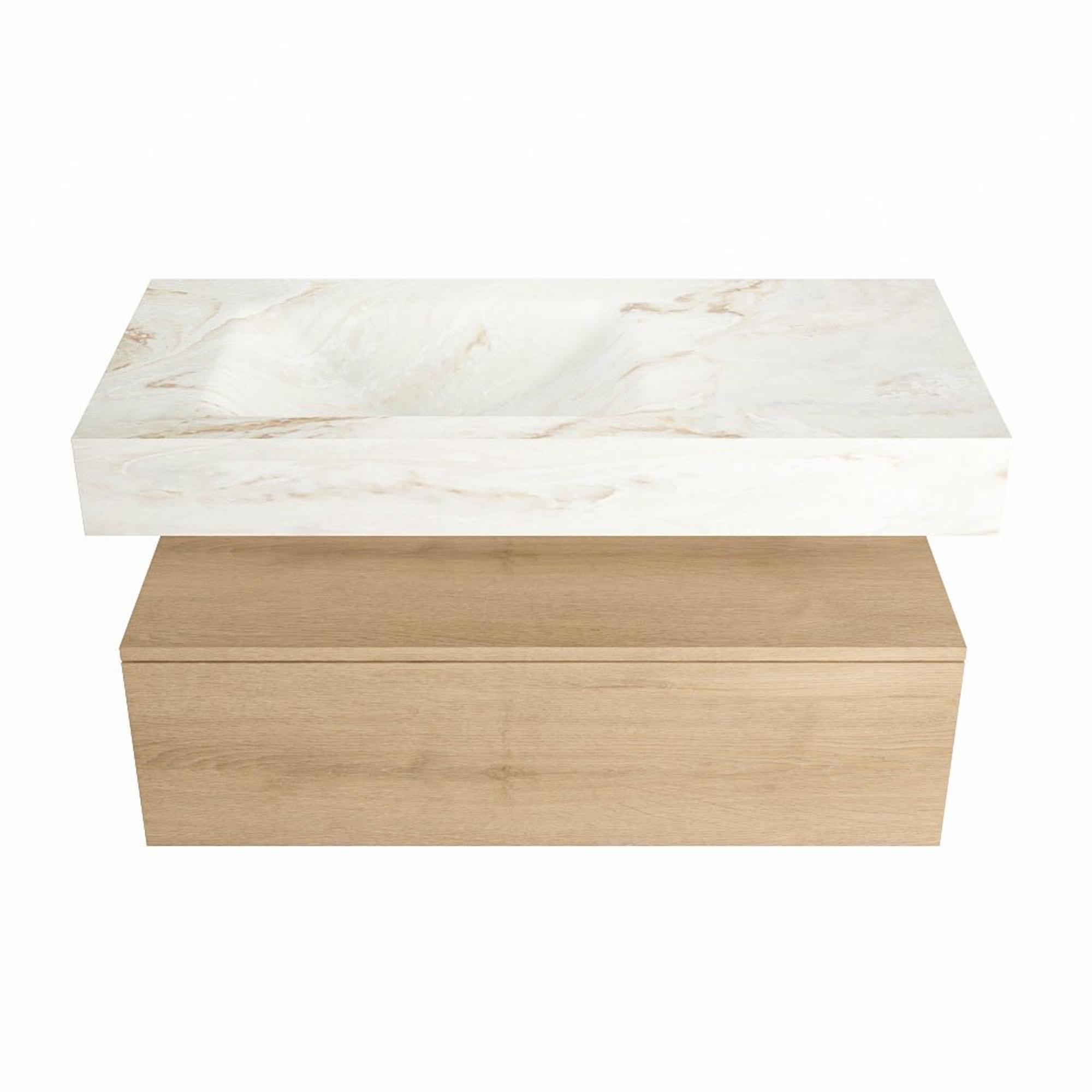 MONDIAZ ALAN - DLUX Badkamermeubelset - 100cm - onderkast - Washed Oak - 1 lade - vrijhangende wastafel - wasbak links - 0 kraangaten - Frappe