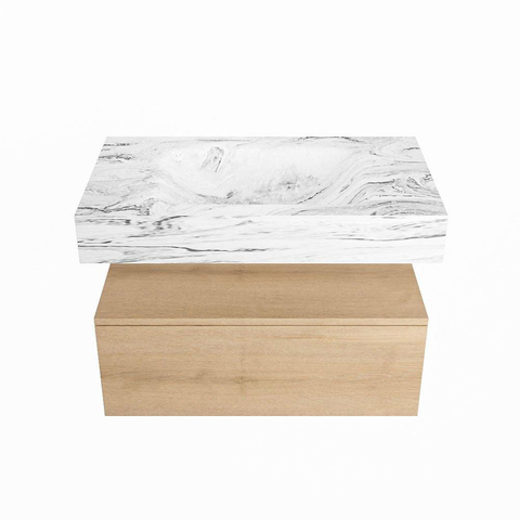 MONDIAZ ALAN - DLUX Badkamermeubelset - 80cm - onderkast - Washed Oak - 1 lade - vrijhangende wastafel - wasbak midden - 0 kraangaten - Glace