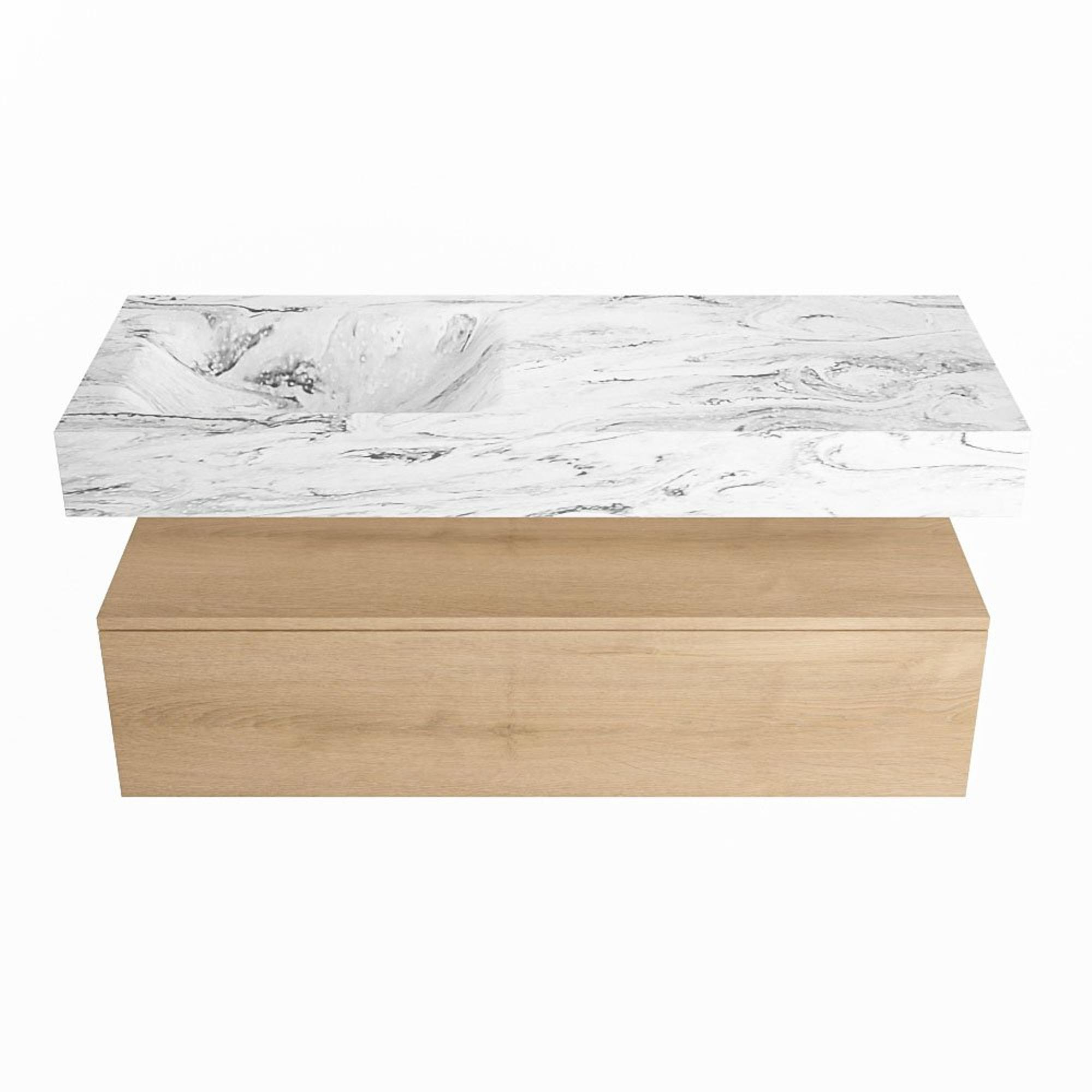 MONDIAZ ALAN - DLUX Badkamermeubelset - 120cm - onderkast - Washed Oak - 1 lade - vrijhangende wastafel - wasbak links - 1 kraangat - Glace