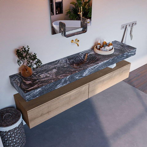 MONDIAZ ALAN - DLUX Badkamermeubelset - 200cm - onderkast - Washed Oak - 2 lades - vrijhangende wastafel - wasbak midden - 0 kraangaten - Lava