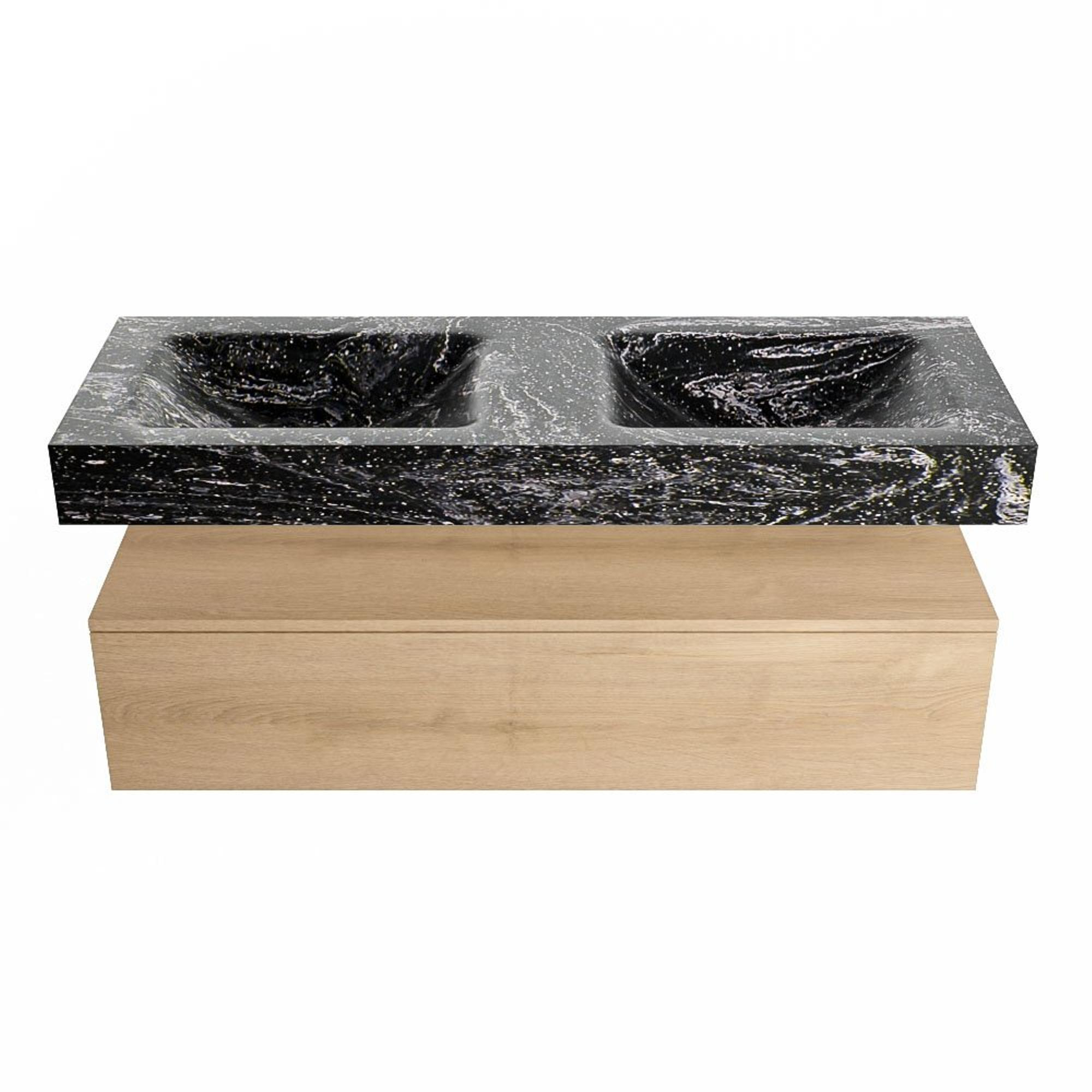 MONDIAZ ALAN - DLUX Badkamermeubelset - 130cm - onderkast - Washed Oak - 1 lade - vrijhangende wastafel - 2 wasbakken - 2 kraangaten - Lava